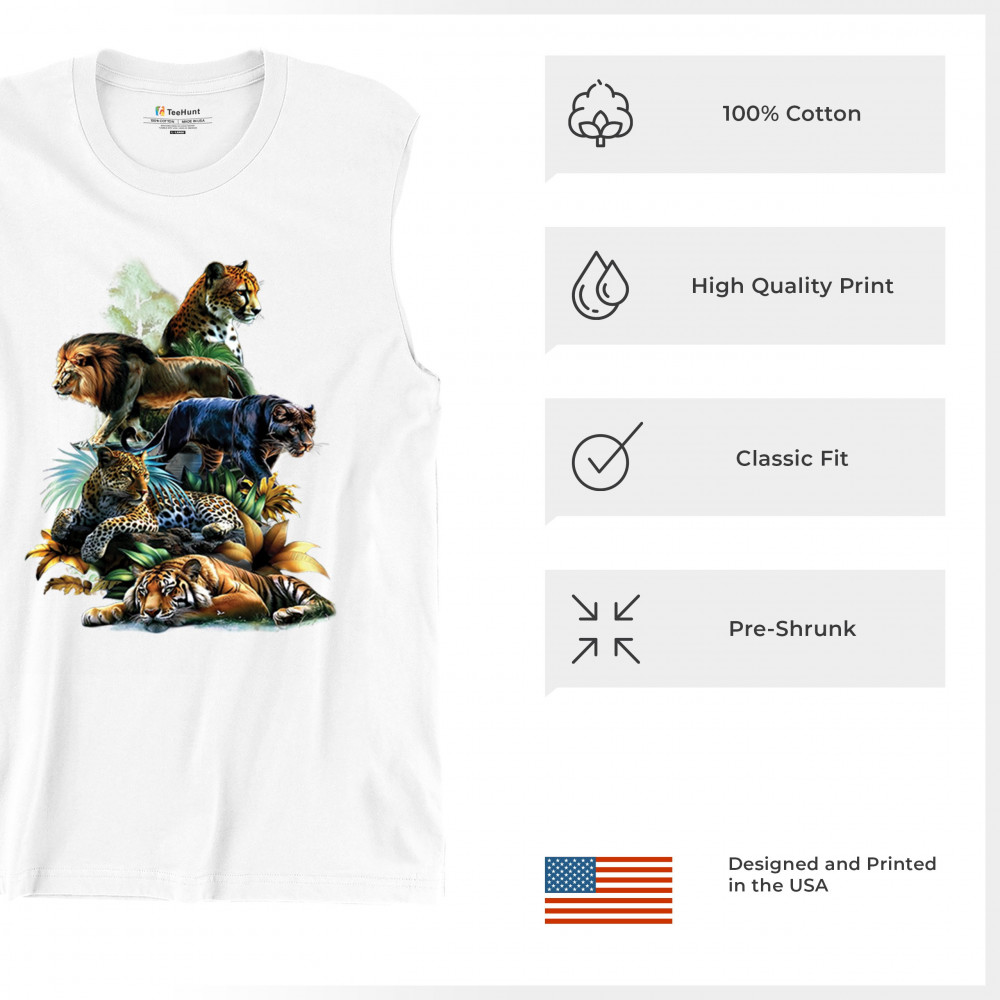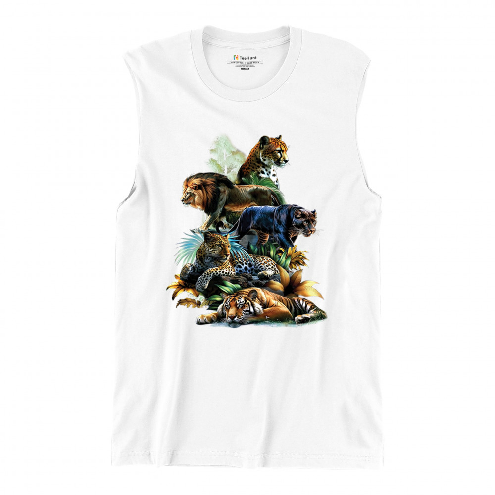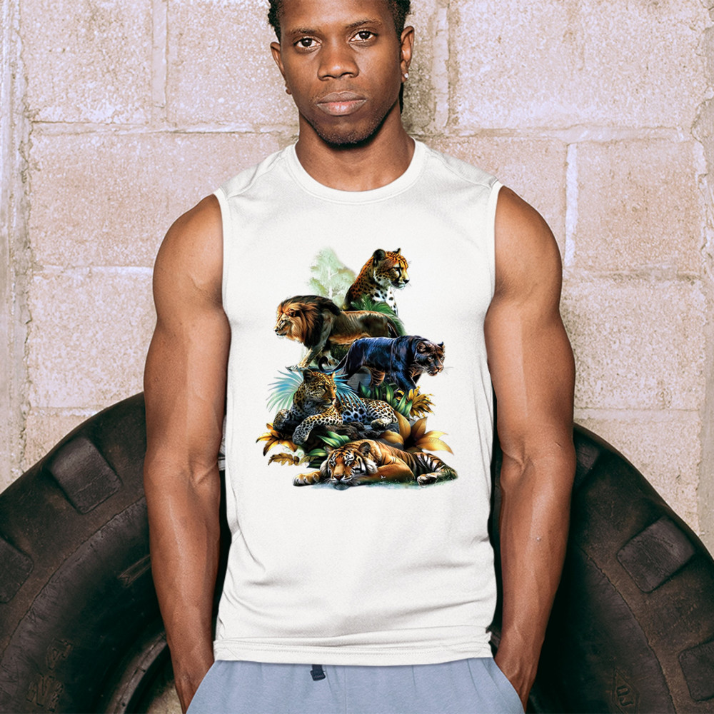 Bold big cat design with lion, tiger, leopard, cheetah, jaguar, and panther. A vivid tribute to wild nature, pride, and animal power.