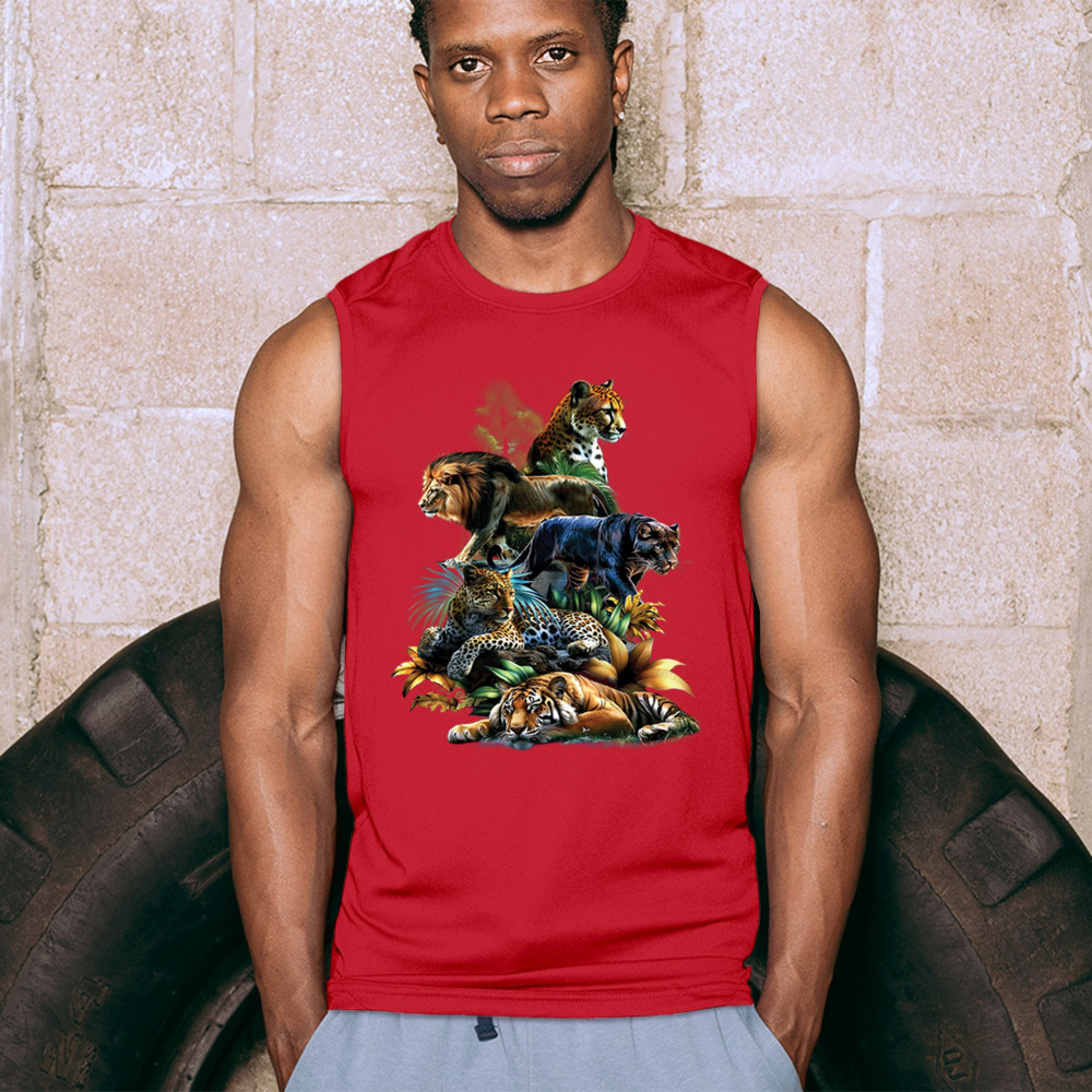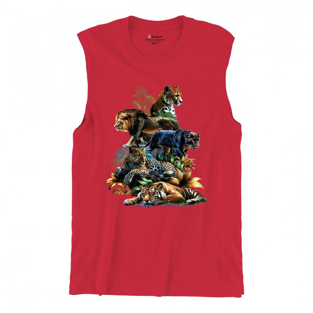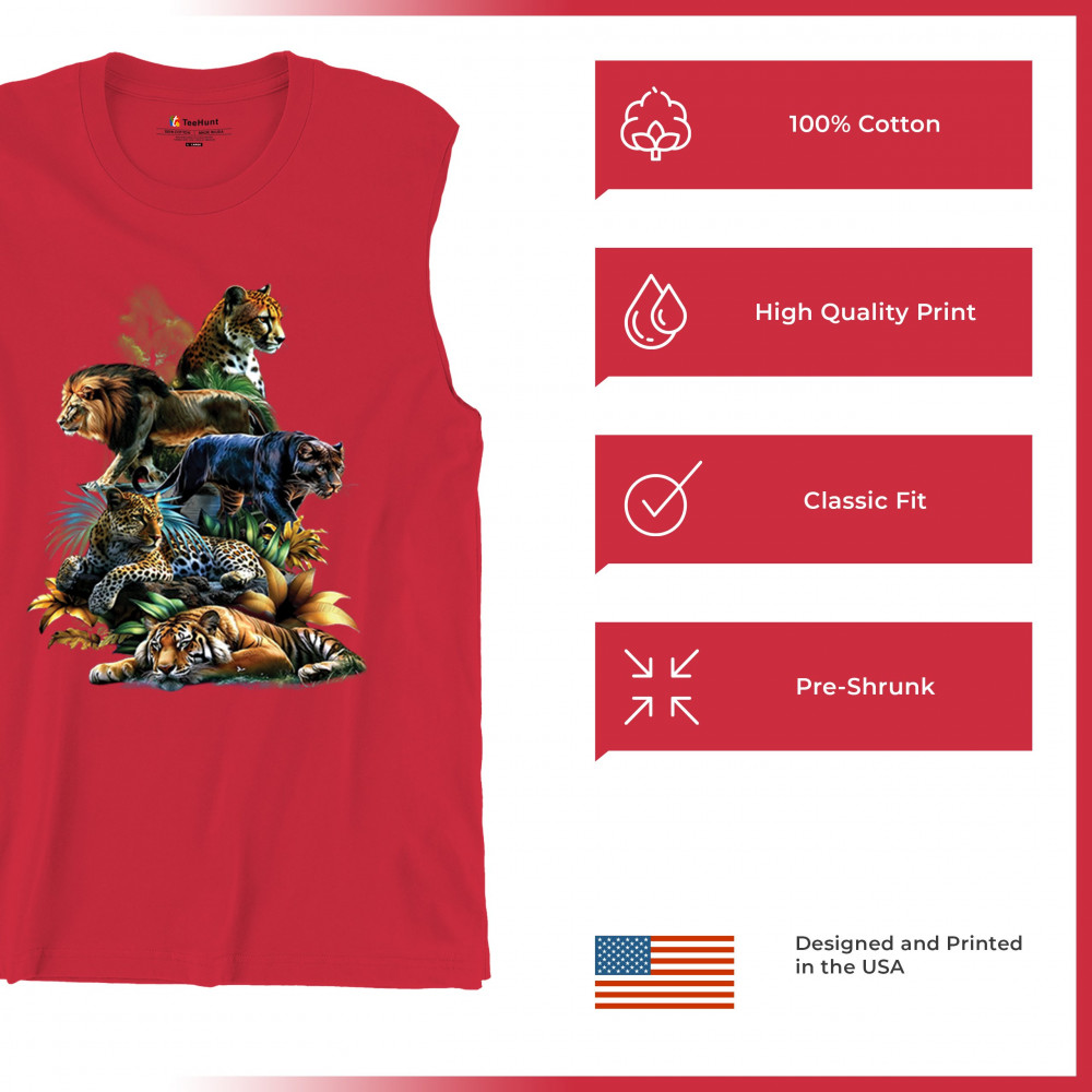 Bold big cat design with lion, tiger, leopard, cheetah, jaguar, and panther. A vivid tribute to wild nature, pride, and animal power.