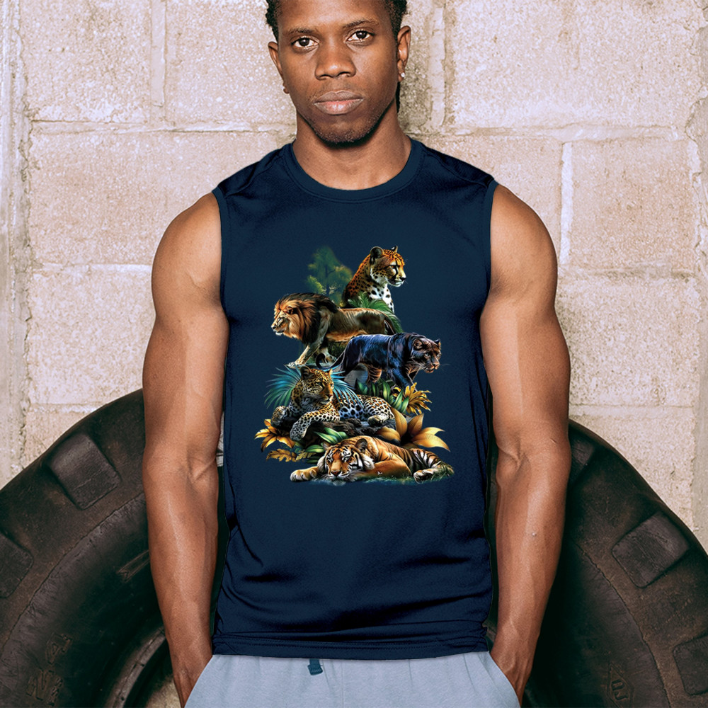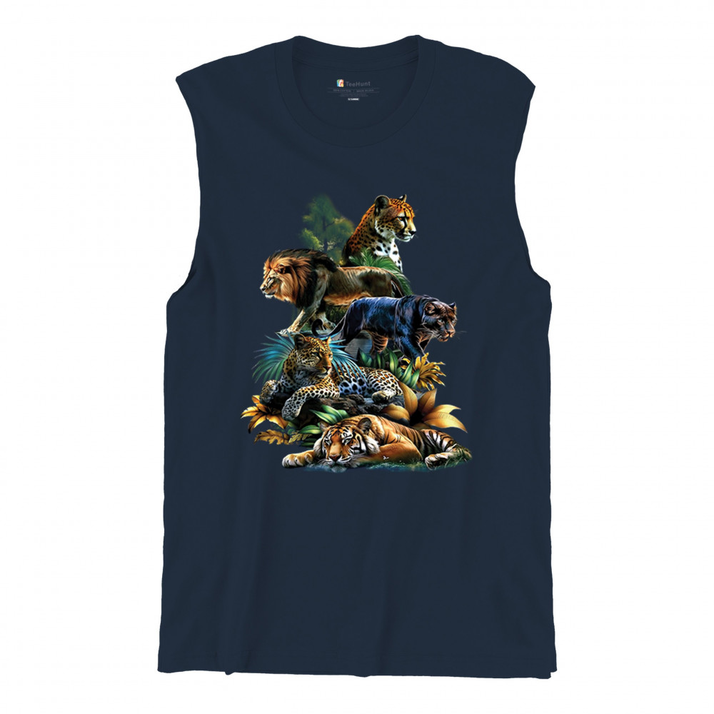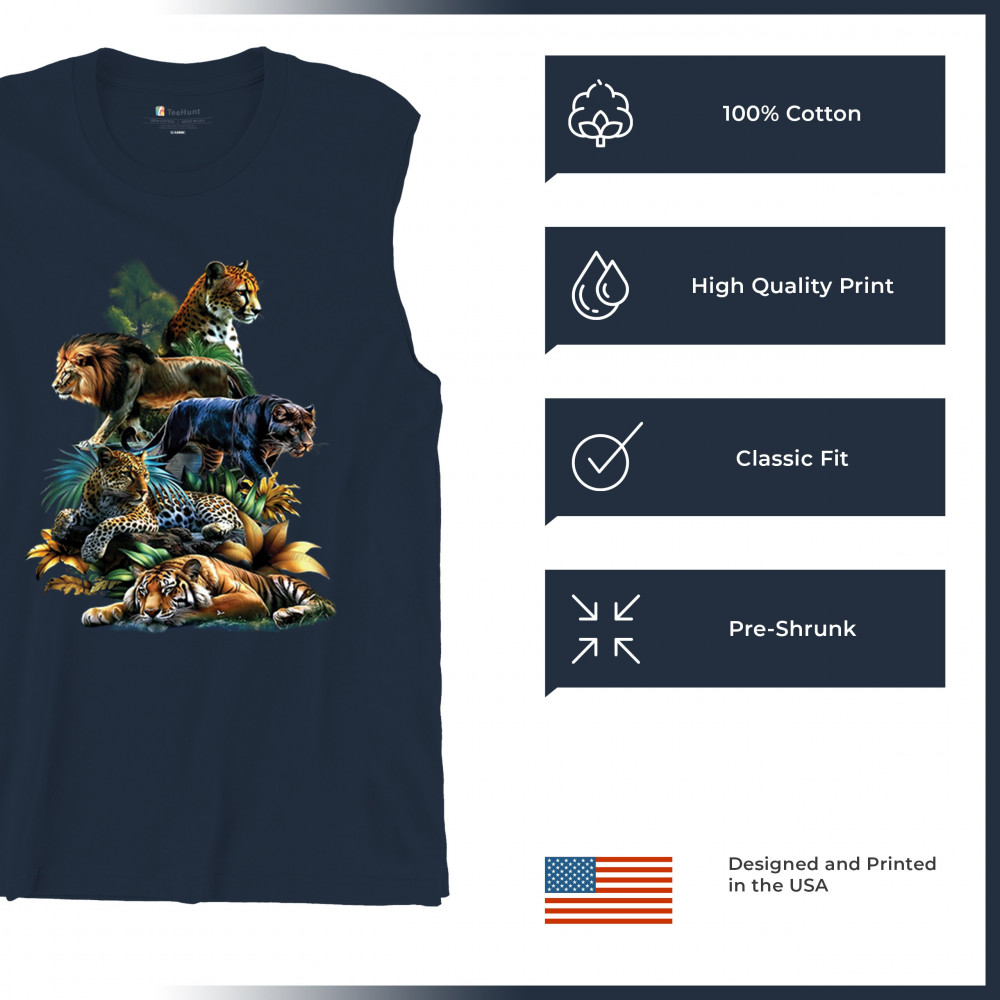 Bold big cat design with lion, tiger, leopard, cheetah, jaguar, and panther. A vivid tribute to wild nature, pride, and animal power.