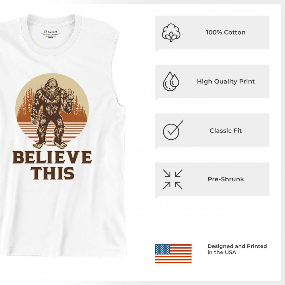 The Believe This Bigfoot design blends cryptid folklore with blunt attitude—because sometimes you just don’t care who believes. Featuring Bigfoot flipping the bird against a rustic tree line, it’s perfect for campers, rebels, and fans of sarcastic forest humor. Ideal for hikes, festivals, and off-grid living.