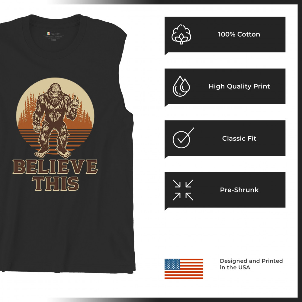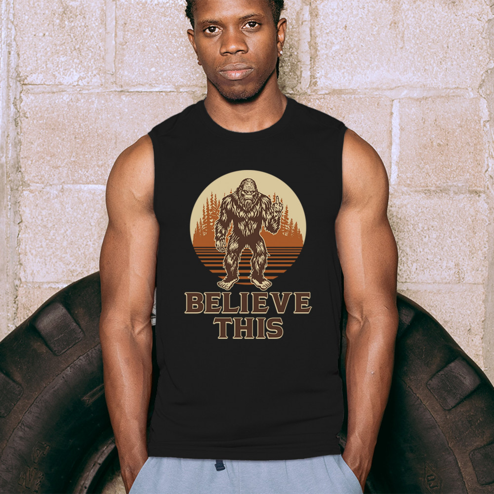 The Believe This Bigfoot design blends cryptid folklore with blunt attitude—because sometimes you just don’t care who believes. Featuring Bigfoot flipping the bird against a rustic tree line, it’s perfect for campers, rebels, and fans of sarcastic forest humor. Ideal for hikes, festivals, and off-grid living.