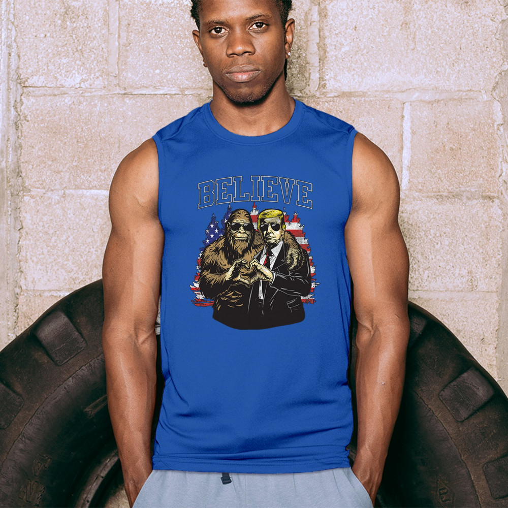The "Believe" design combines patriotic pride and conservative values with a touch of fun. Featuring Donald J. Trump and a loyal Bigfoot against the American flag, this graphic is perfect for Trump supporters, Republicans, and believers in America First. Celebrate the Red Wave, the 47th President, and the unstoppable fight for victory. Ideal for anyone with unwavering belief in the people's mandate.