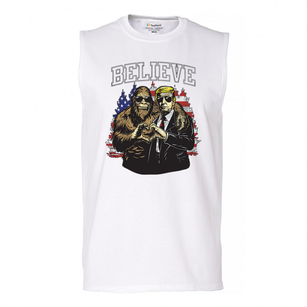 Show your belief with Trump and Bigfoot! Celebrate America First, the Red Wave, and conservative pride with this unique and patriotic design.