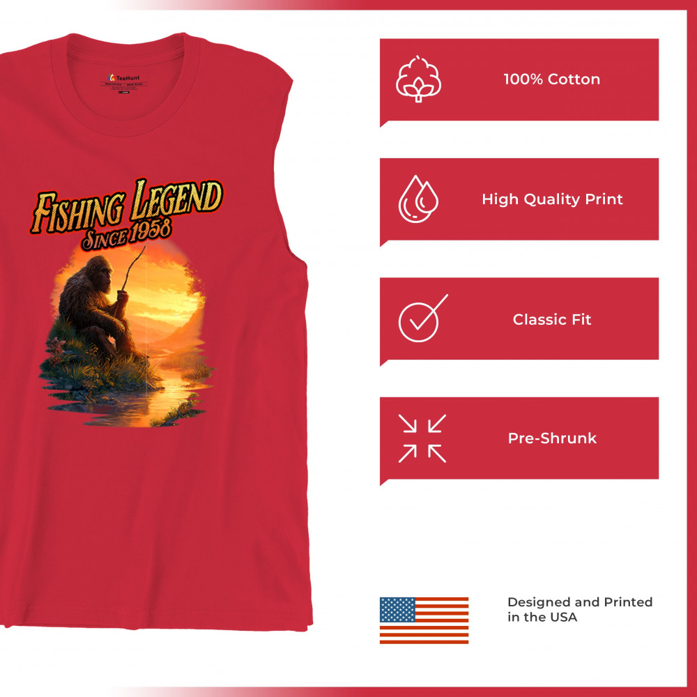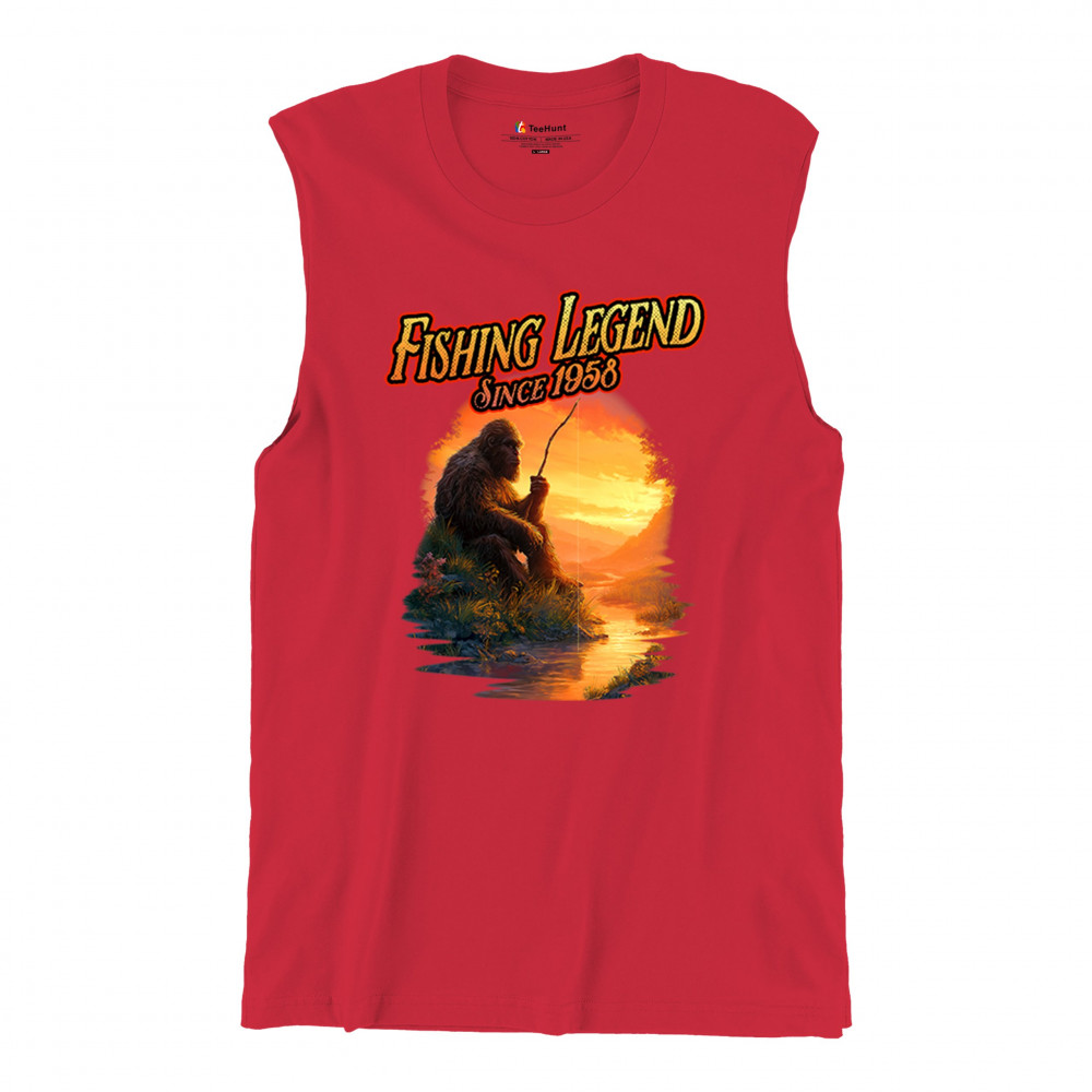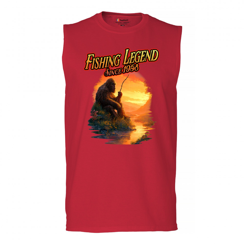 Bigfoot fishing legend design with Sasquatch lifestyle, retro vintage humor, funny wilderness shirt, Father’s Day gift, and campfire style.