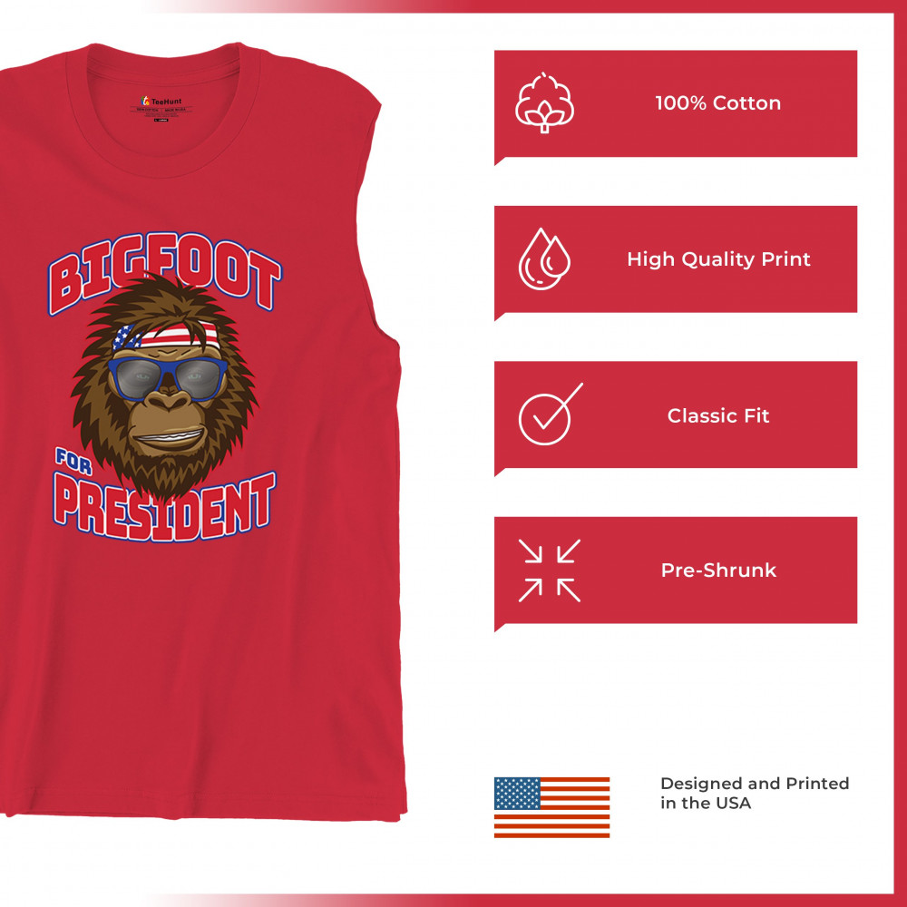 Show off your quirky style with the "Bigfoot for President" design. Perfect for casual wear and parties, featuring Bigfoot in sunglasses and a patriotic bandana.