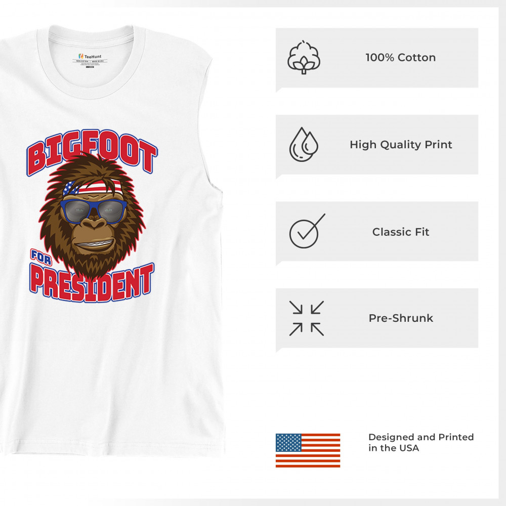 Show off your quirky style with the "Bigfoot for President" design. Perfect for casual wear and parties, featuring Bigfoot in sunglasses and a patriotic bandana.