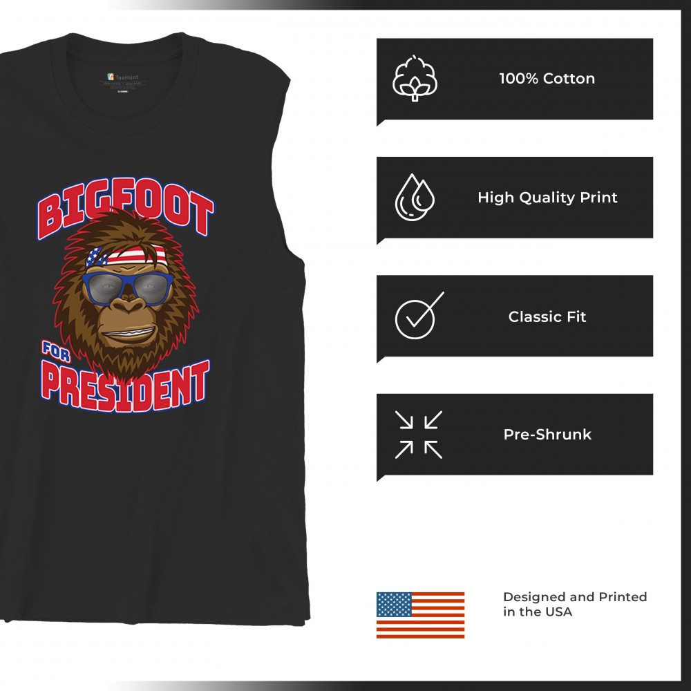 Show off your quirky style with the "Bigfoot for President" design. Perfect for casual wear and parties, featuring Bigfoot in sunglasses and a patriotic bandana.