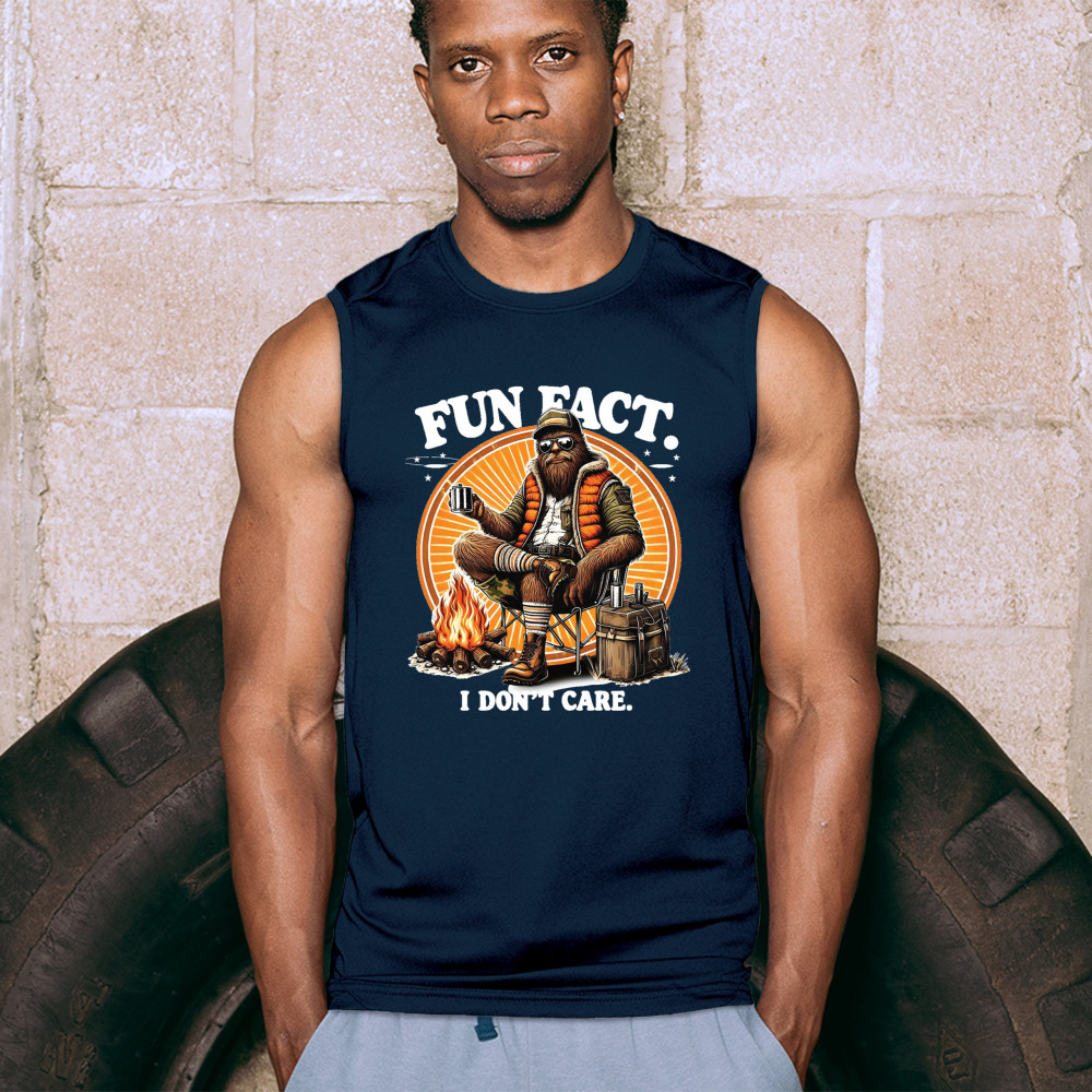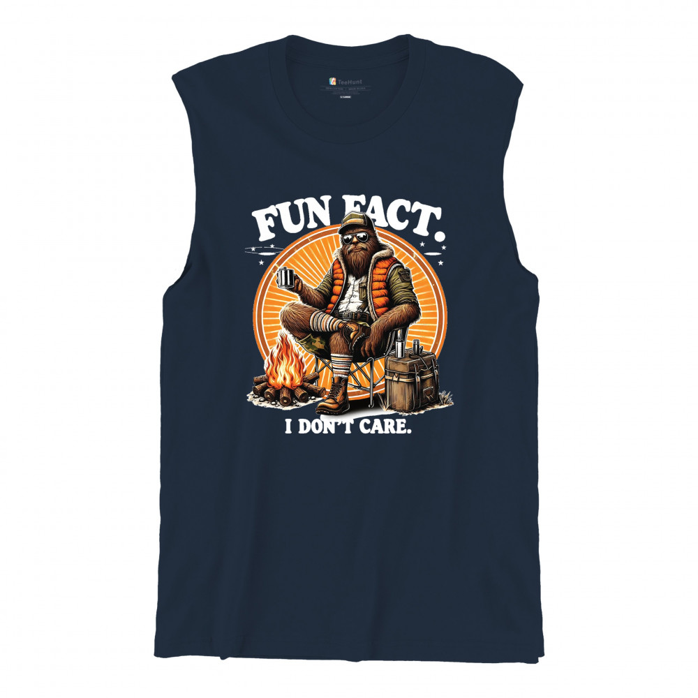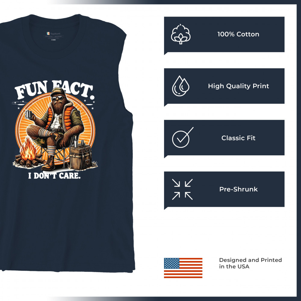 Funny Bigfoot Fun Fact design with cryptid humor, sarcastic outdoors shirt vibe, retro Sasquatch saying, USA pride, and camping adventure style.