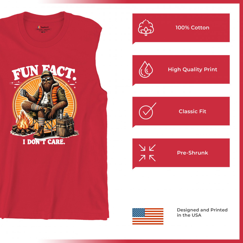 Funny Bigfoot Fun Fact design with cryptid humor, sarcastic outdoors shirt vibe, retro Sasquatch saying, USA pride, and camping adventure style.