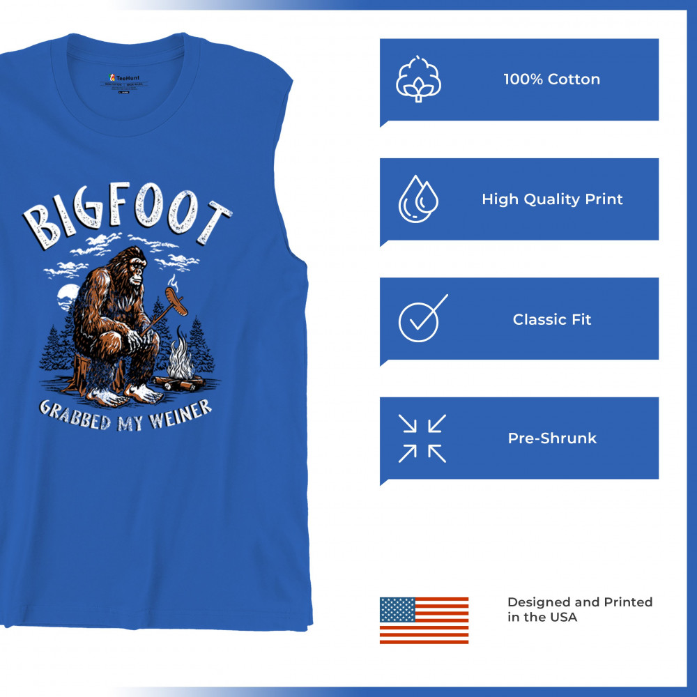 The Bigfoot Grabbed My Weiner design brings cheeky campfire humor to your outdoor adventures. Featuring a cartoon-style Sasquatch roasting a sausage by the fire, it’s perfect for cryptid lovers, campers, and jokesters. Ideal for BBQs, bonfires, forest festivals, and anyone who enjoys weiner jokes with their wilderness.