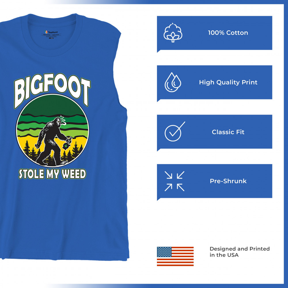 Humorous "Bigfoot Stole My Weed" design featuring Bigfoot and a cannabis leaf. Perfect for fans of Mary Jane, stoned humor, and a chill lifestyle.