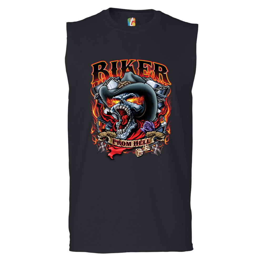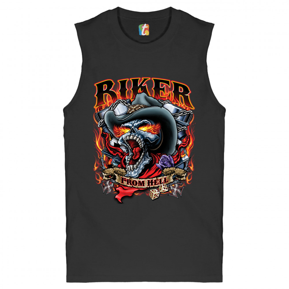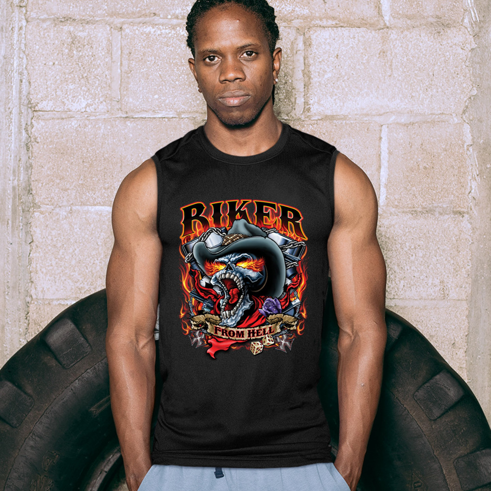 BIKER FROM HELL muscle shirt ride or die skeleton outlaw route 66 men's black