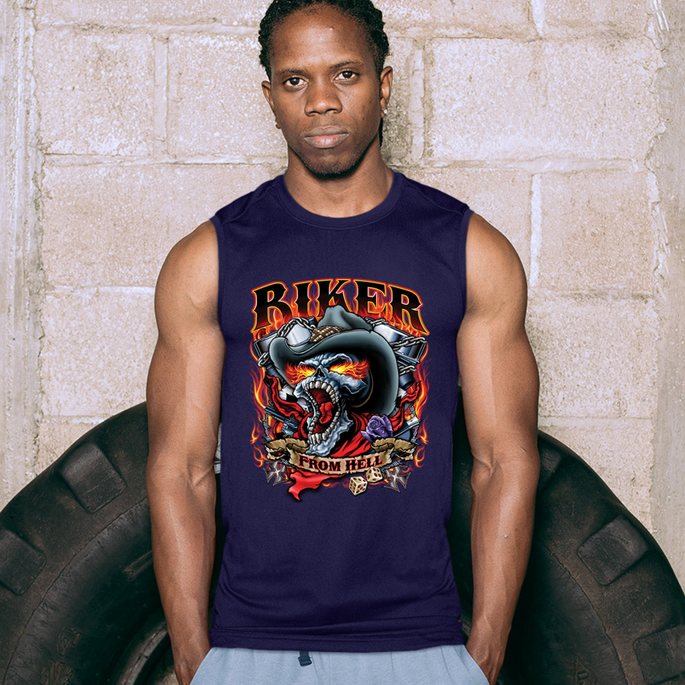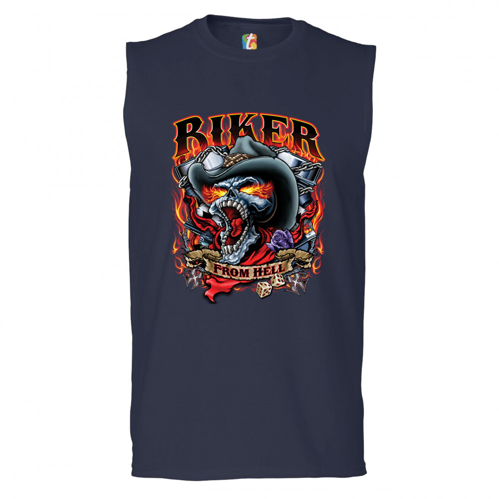 BIKER FROM HELL muscle shirt ride or die skeleton outlaw route 66 men's navy blue