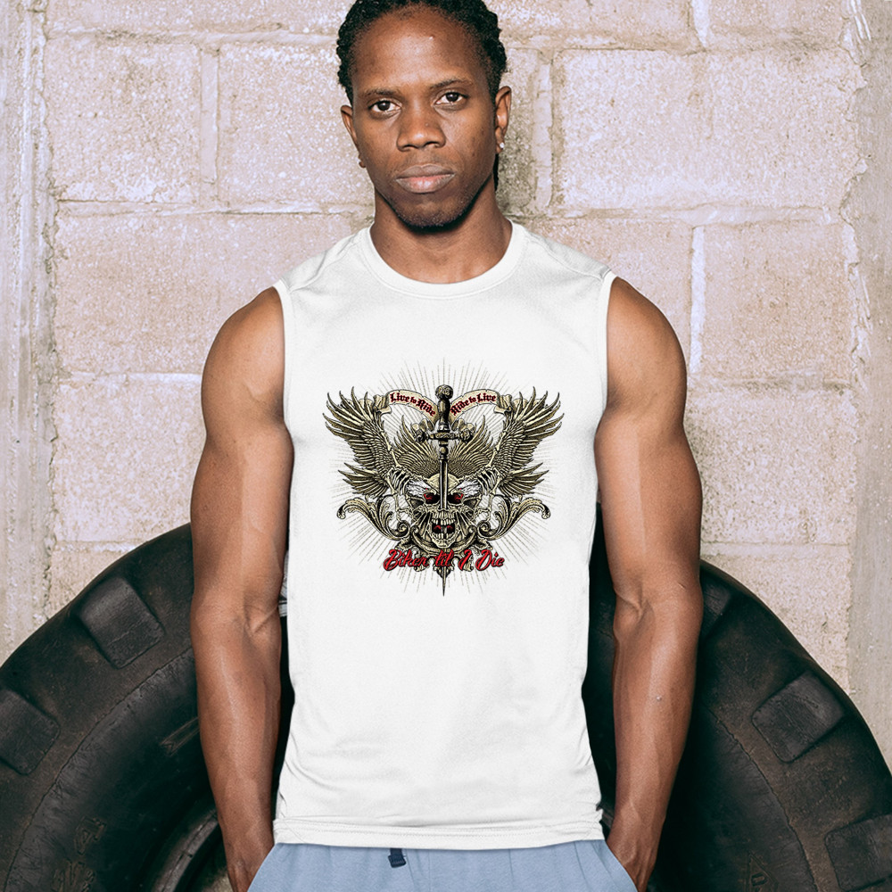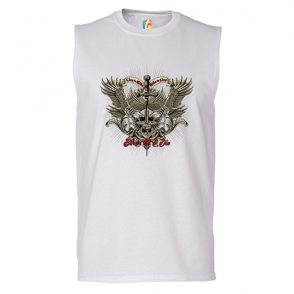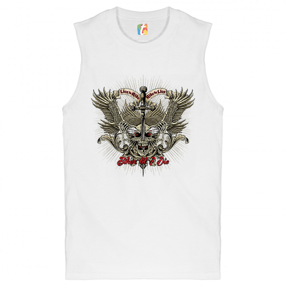 BIKER TIL I DIE muscle shirt live to ride biker forever skull face men's white