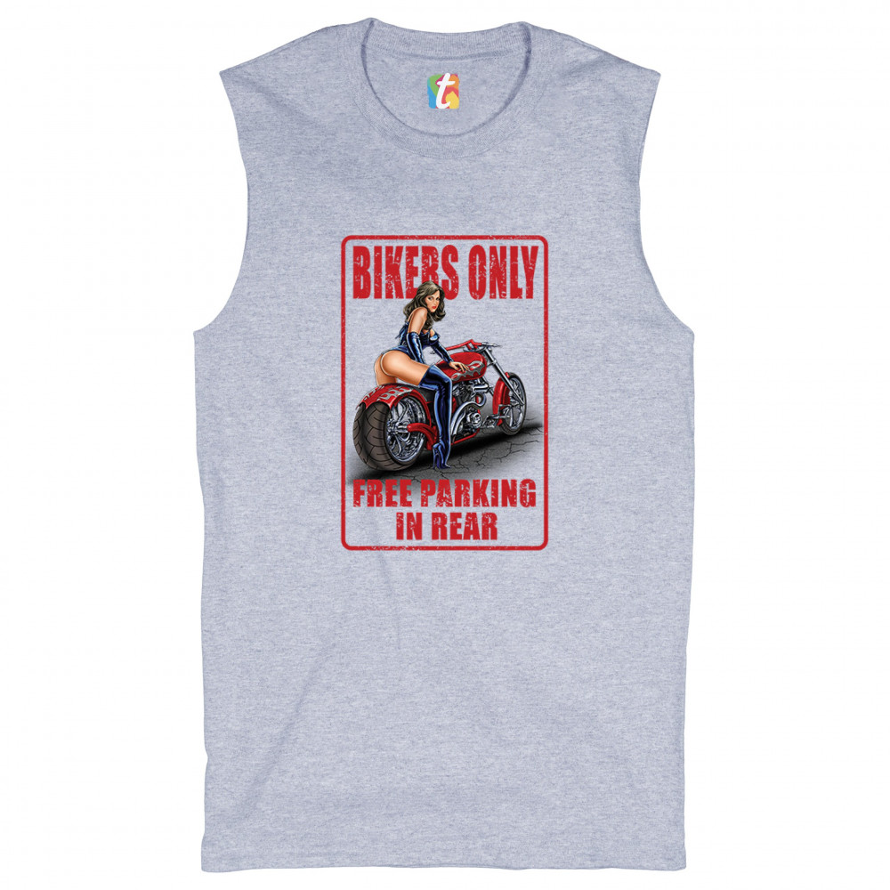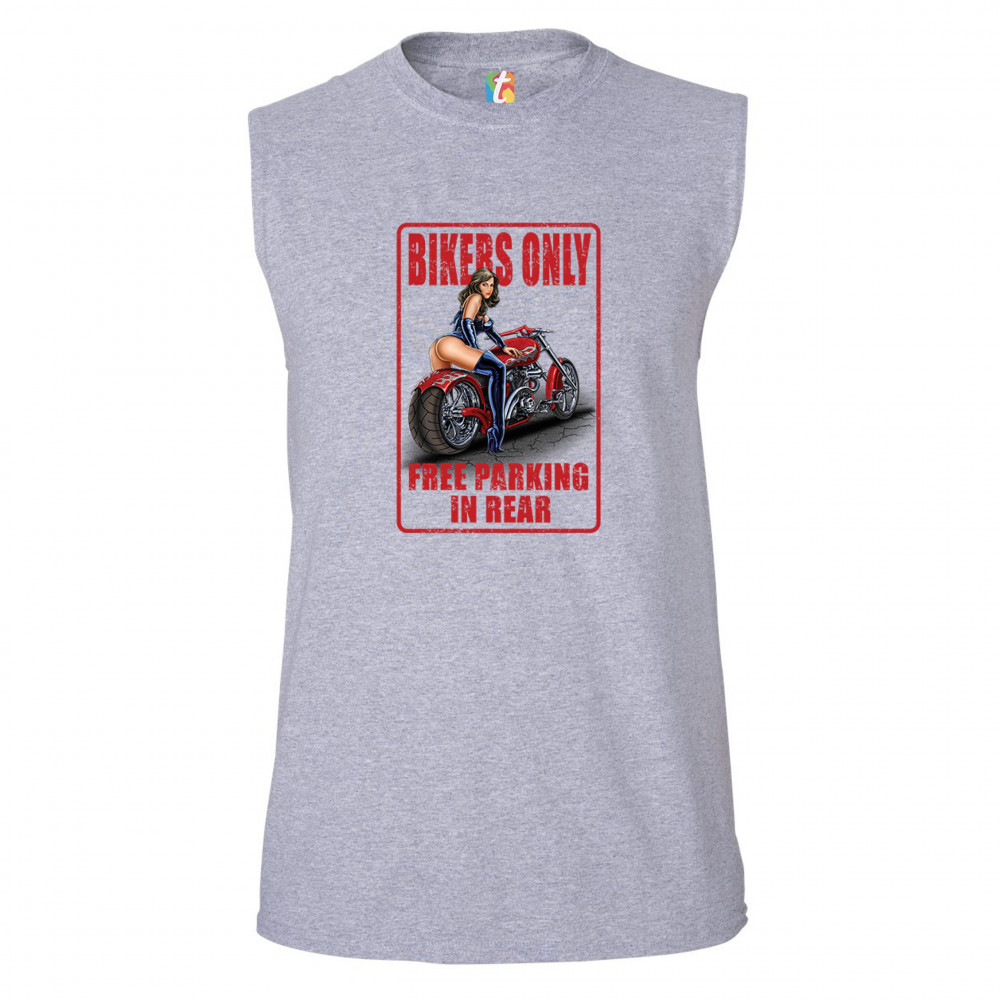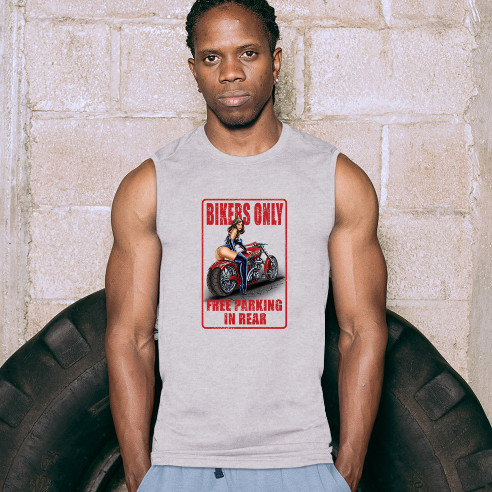 BIKERS ONLY FREE PARKING IN REAR muscle shirt funny pin-up biker chick men's gray