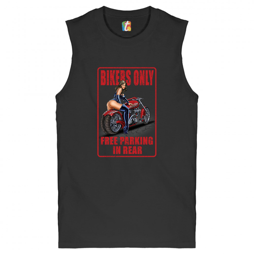 BIKERS ONLY FREE PARKING IN REAR muscle shirt funny pin-up biker chick men's black