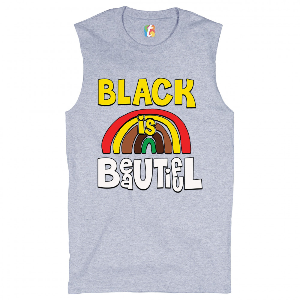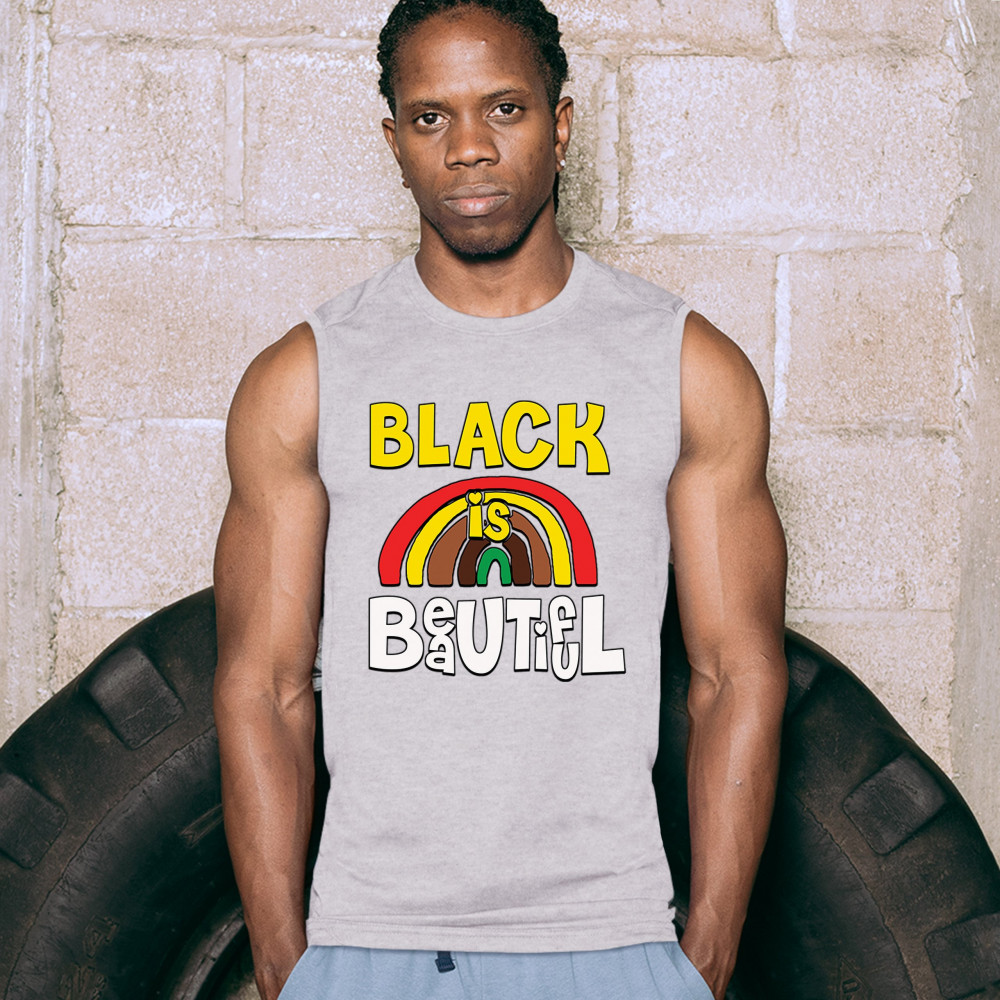 BLACK IS BEAUTIFUL muscle shirt african american black pride equality men's gray