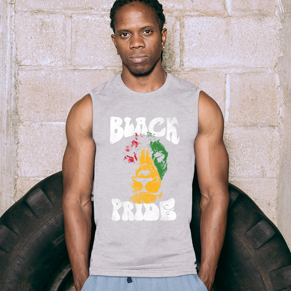 BLACK PRIDE muscle shirt black culture equality blm african lion men's gray