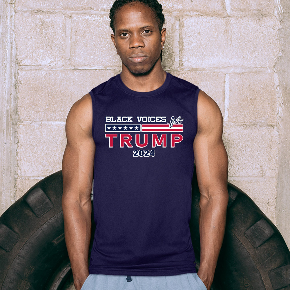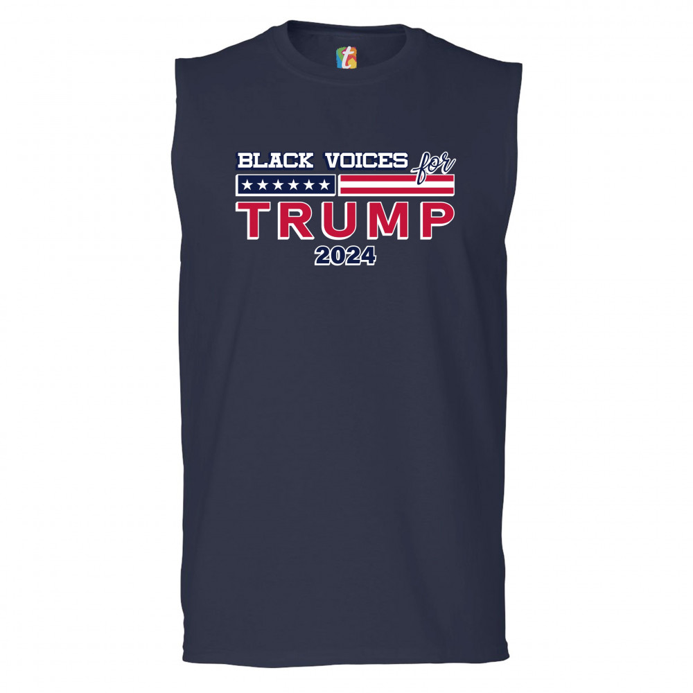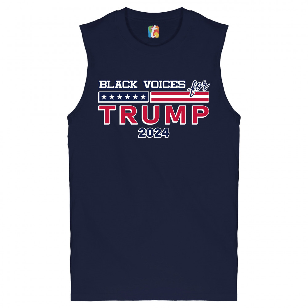 BLACK VOICES FOR TRUMP muscle shirt donald trump 2024 stars and stripes men's navy blue