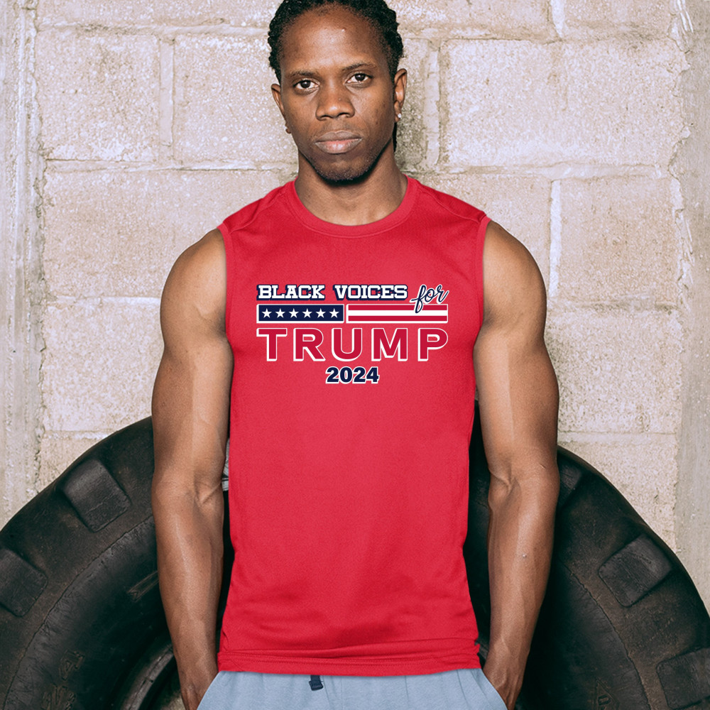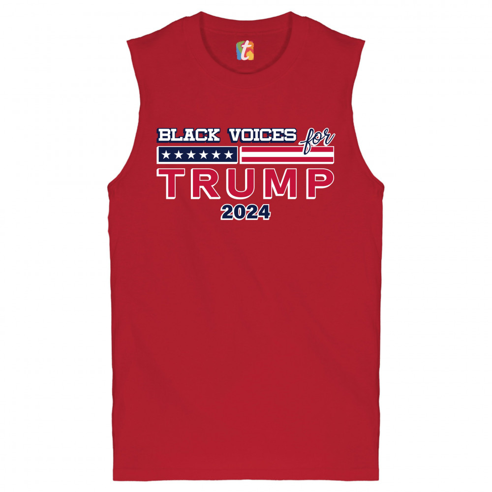 BLACK VOICES FOR TRUMP muscle shirt donald trump 2024 stars and stripes men's red