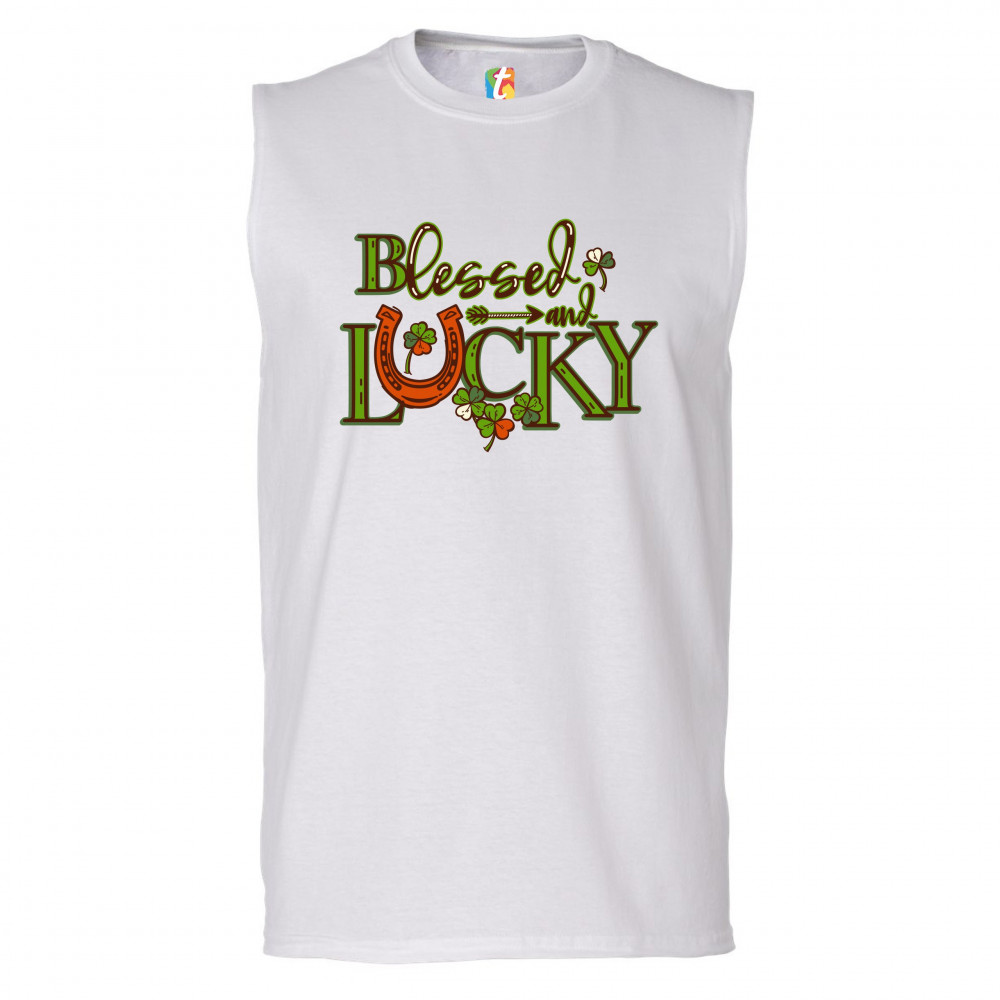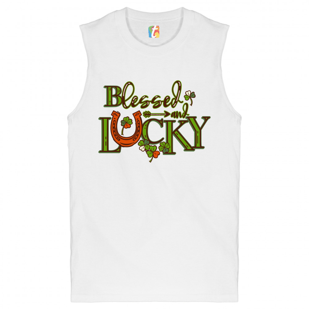 BLESSED AND LUCKY muscle shirt st. patrick's day clover irish malarkey men's white