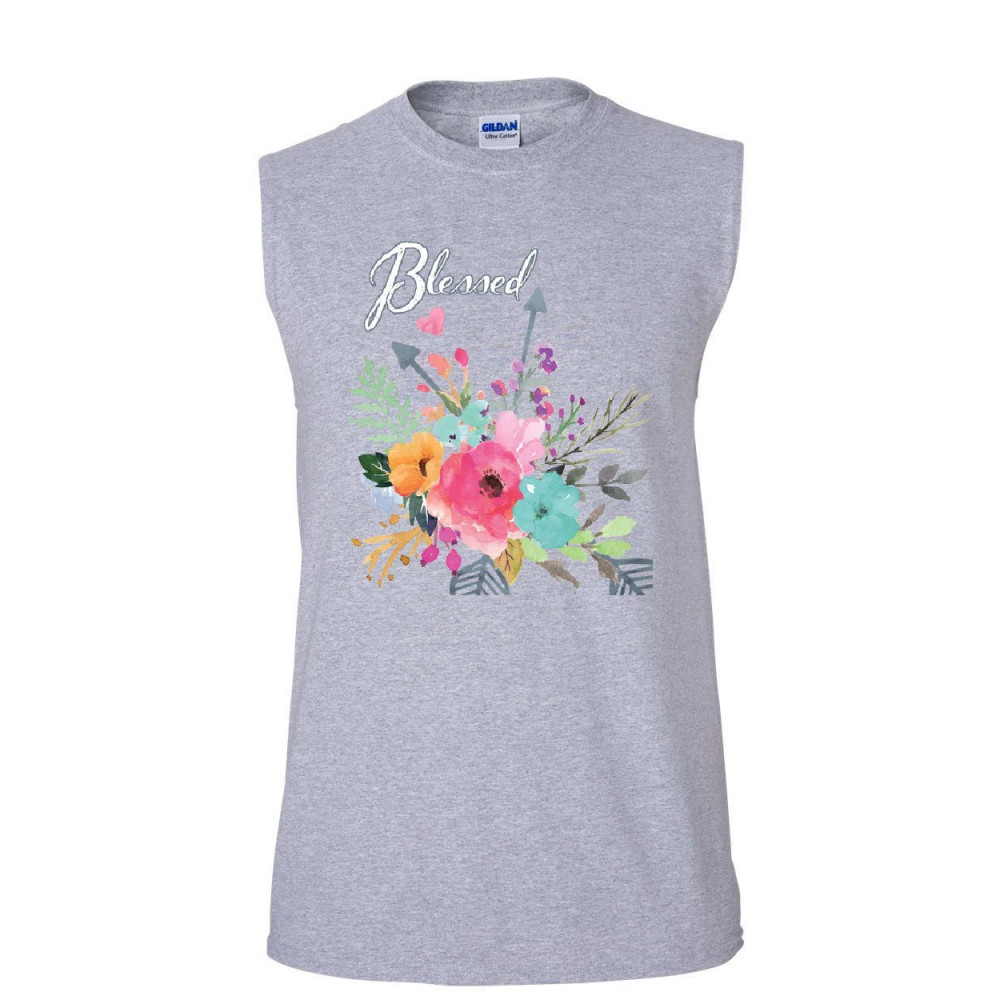 BLESSED muscle shirt love faith hope believer motivation kindness sleeveless gray