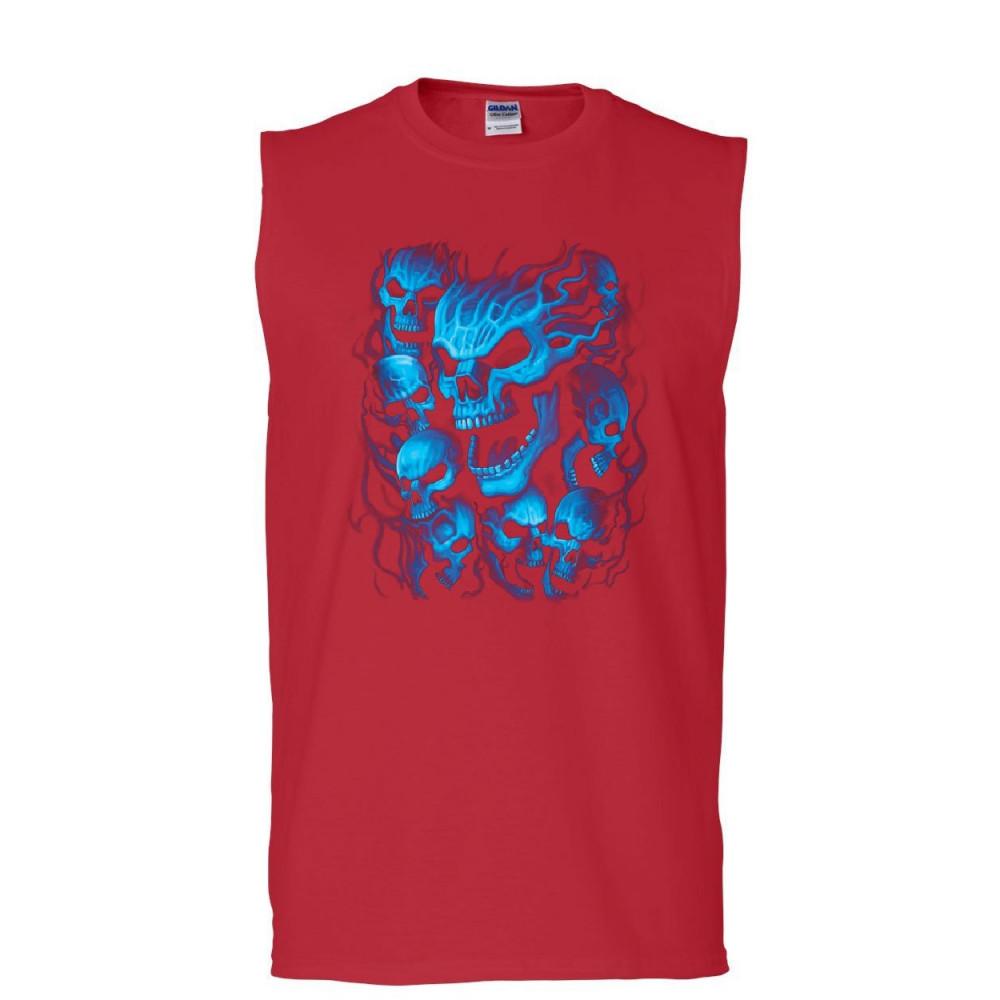 BLUE SKULLS muscle shirt skull face death dead reaper hell evil demon sleeveless red