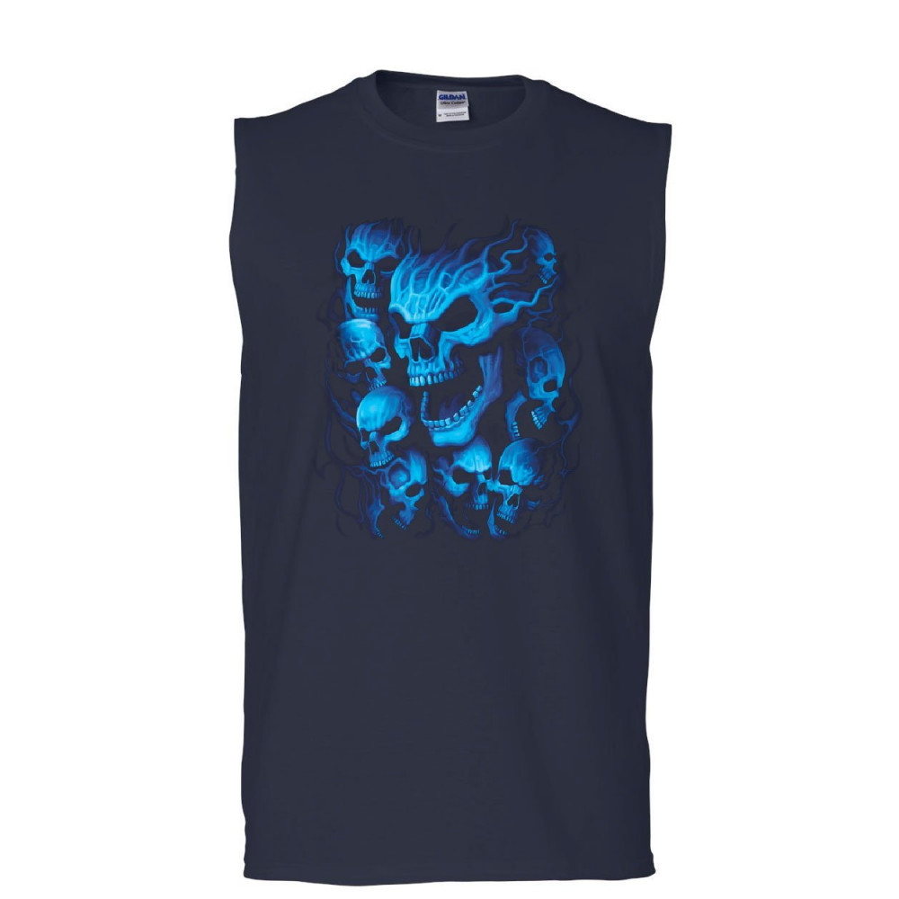 BLUE SKULLS muscle shirt skull face death dead reaper hell evil demon sleeveless navy blue