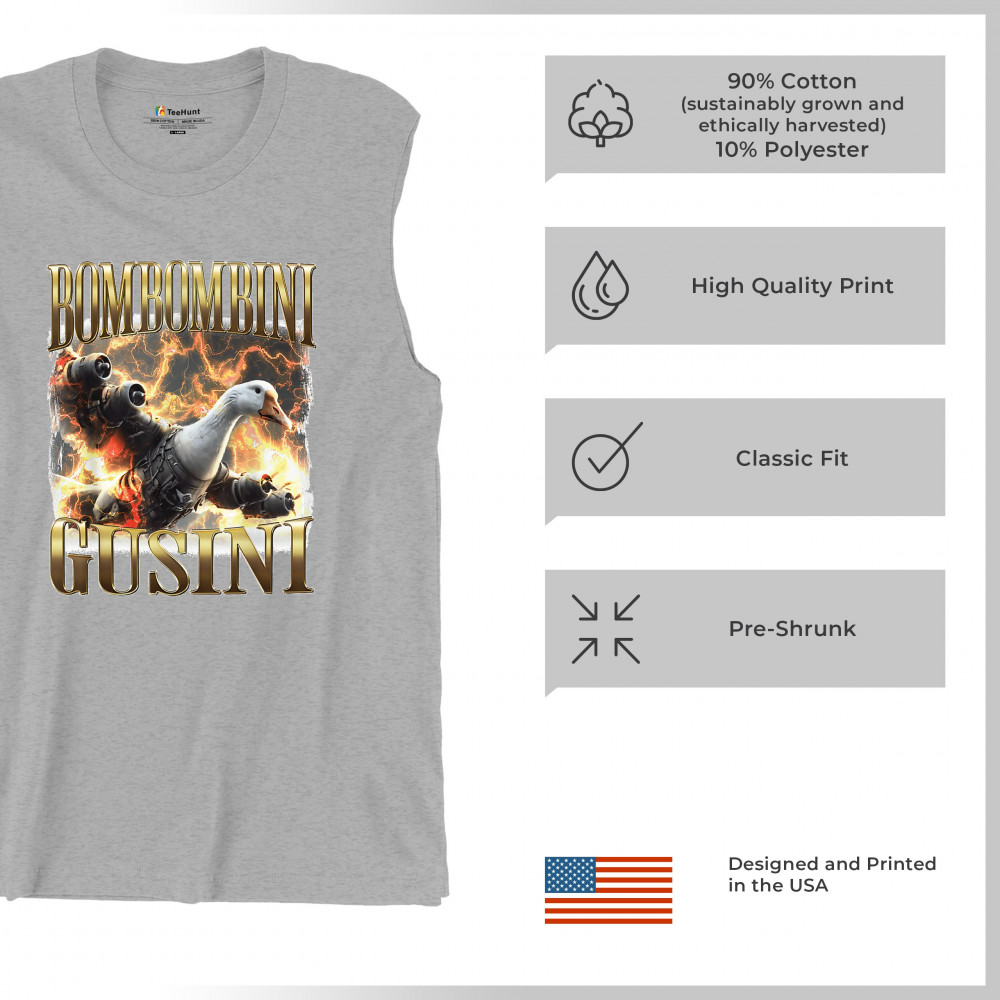 Bombombini Gusini is meme chaos at Mach speed. Featuring a mechanized goose powered by pure Italian Brainrot energy, this design blends cursed-core humor, Gen Z absurdity, ironic fashion, and weirdcore visuals. Perfect for animal meme fans, TikTok-core addicts, and anyone whose humor is completely unhinged.