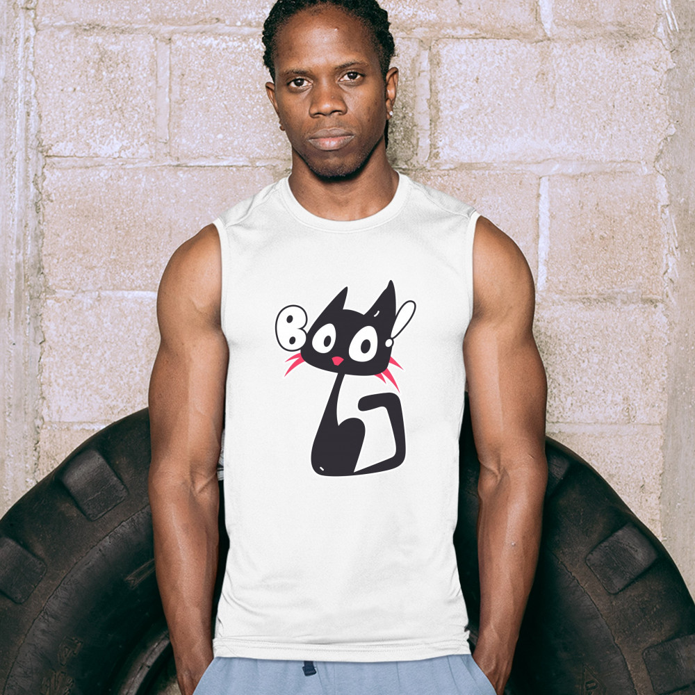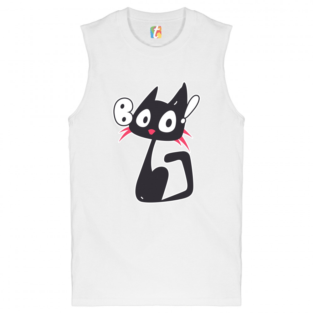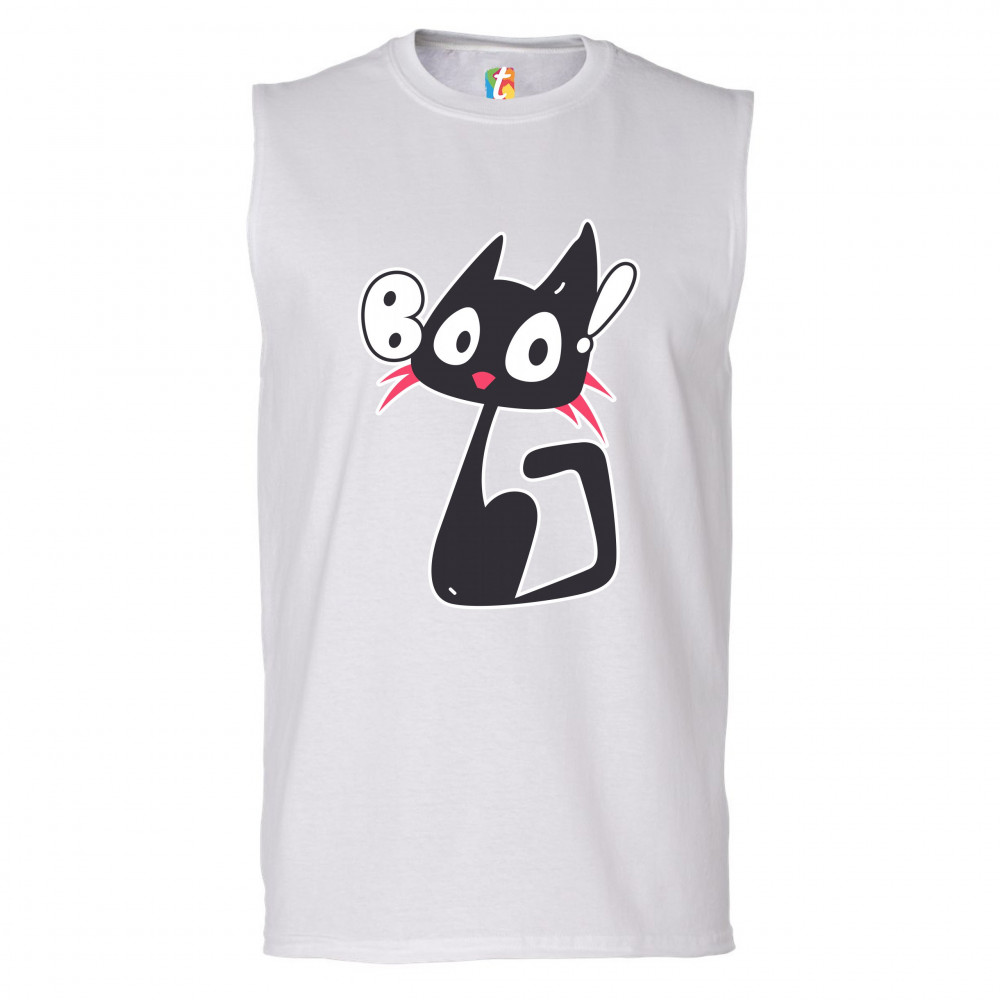 BOO KITTEN muscle shirt happy halloween trick-or-treating funny cat men's white