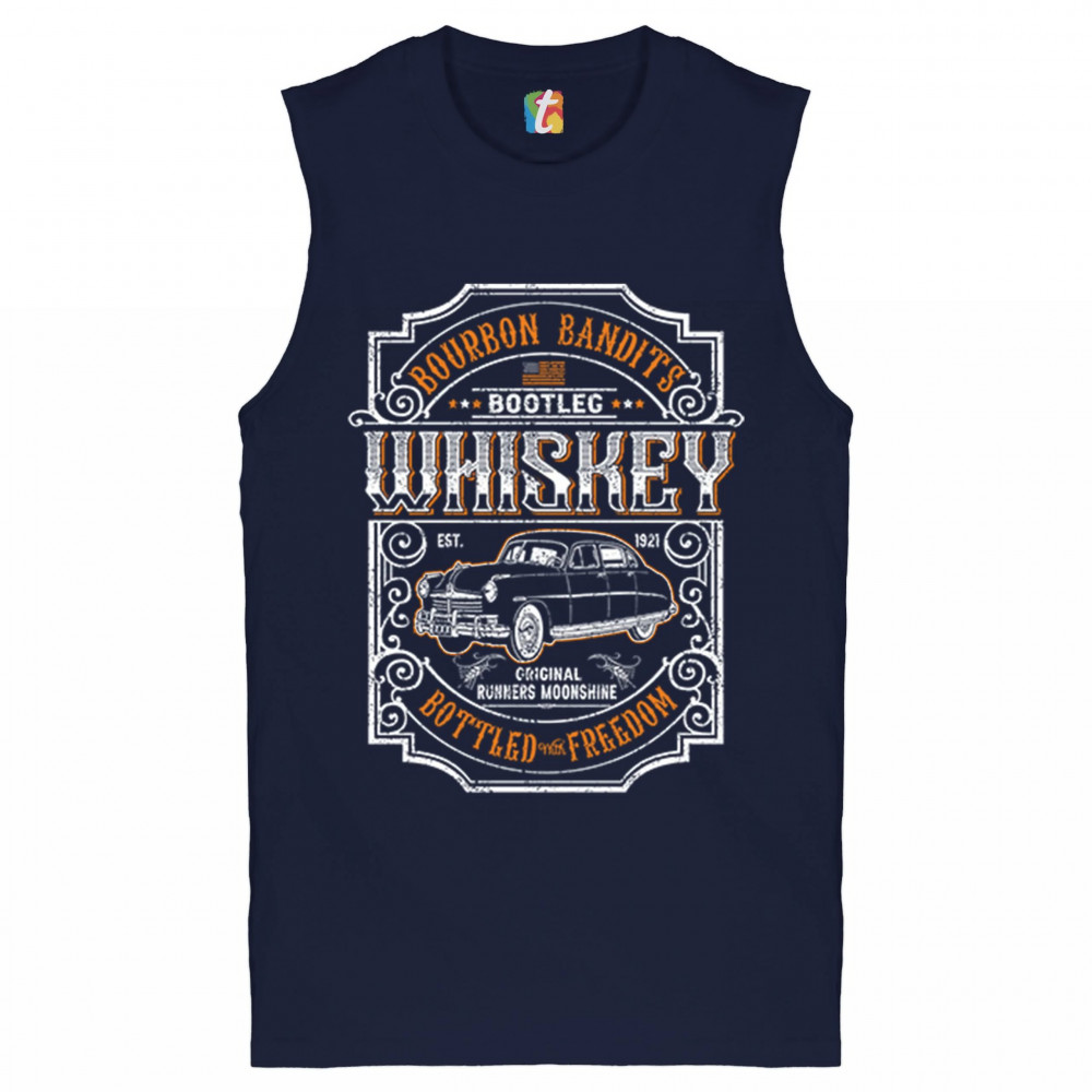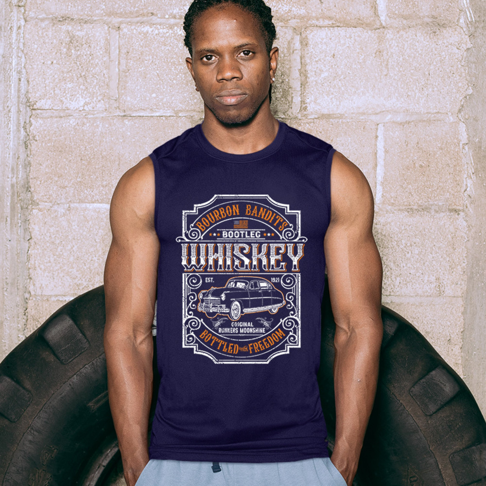 BOURBON BANDIT'S BOOTLEG WHISKEY muscle shirt original runners moonshine men's navy blue