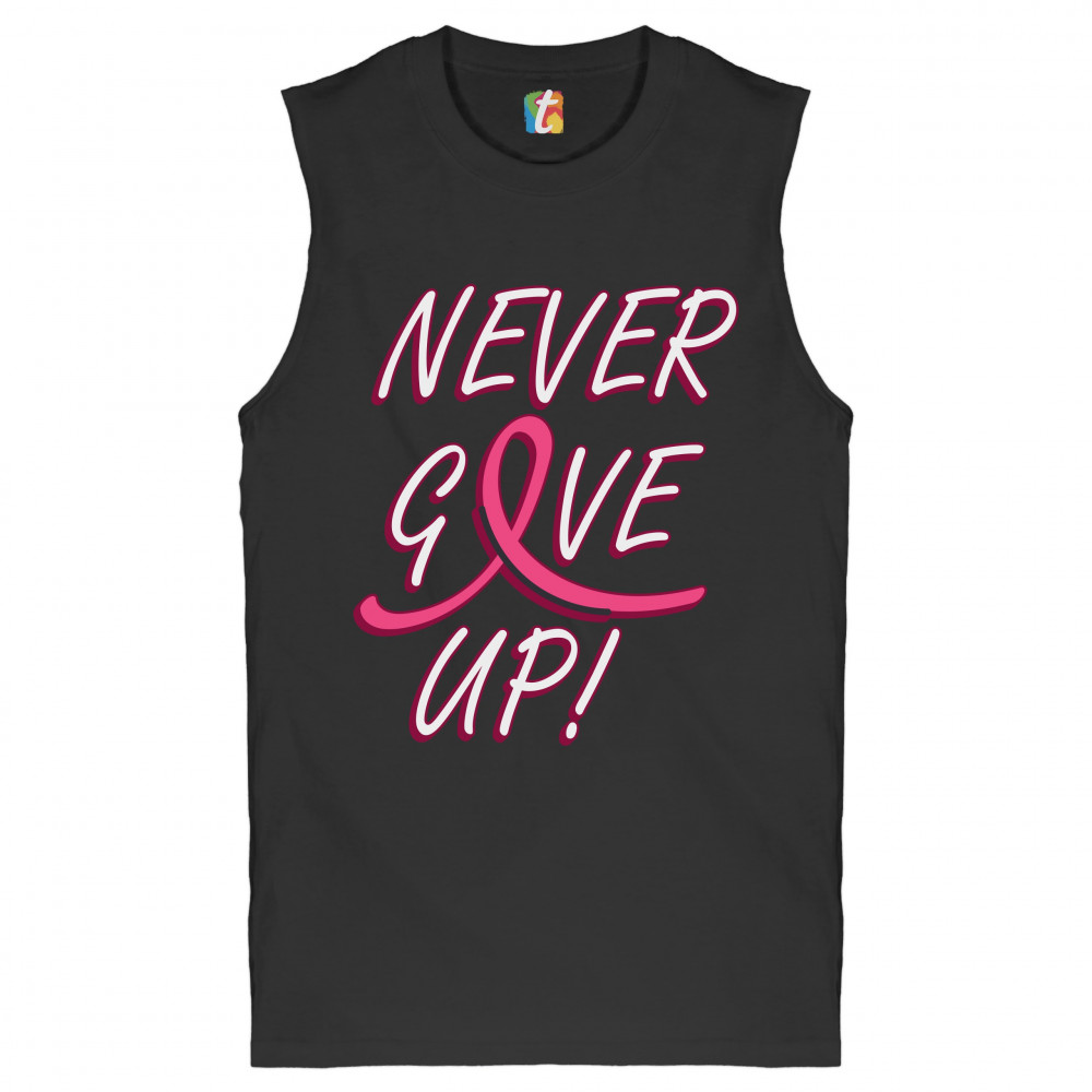 BREAST CANCER AWARENESS NEVER GIVE UP muscle shirt pink ribbon men's black