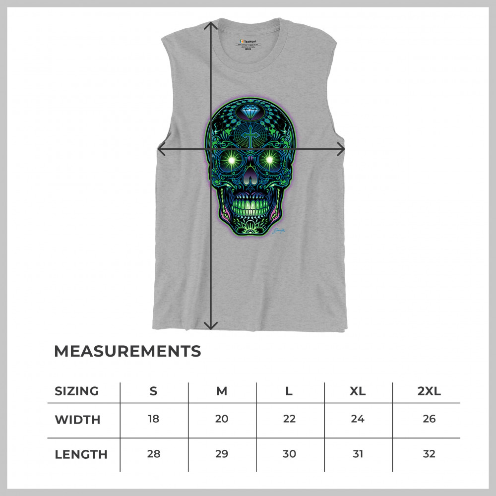 This electrified sugar skull design glows with neon energy and intricate details. Featuring green eyes, radiant cross, diamond, spider web, and vivid colors, it's a bold mash-up of psychedelic art, Day of the Dead tradition, and rave culture. A vibrant design perfect for skull fans and spiritual rebels alike.
