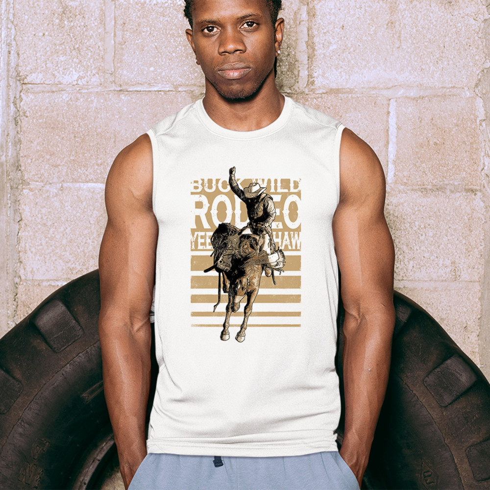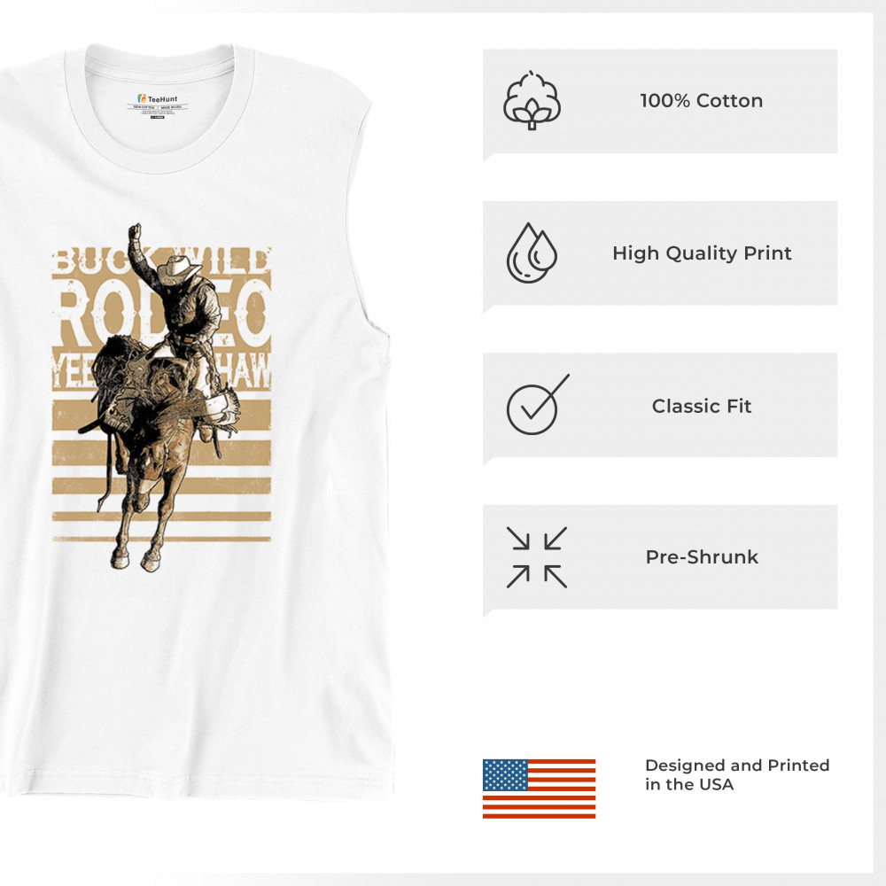Rodeo bronc rider design with cowboy grit. Western graphic for fans of ranch life, bucking broncos, and rodeo events.