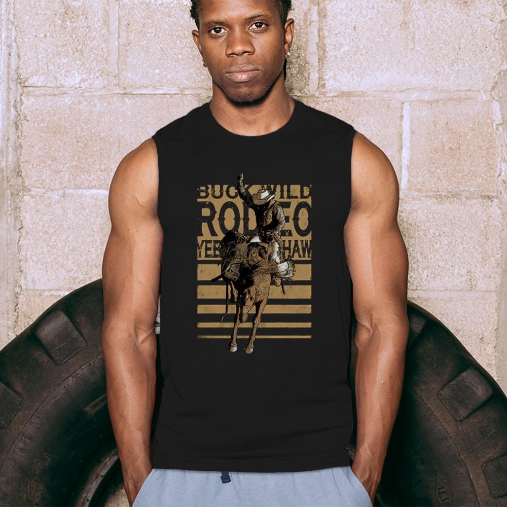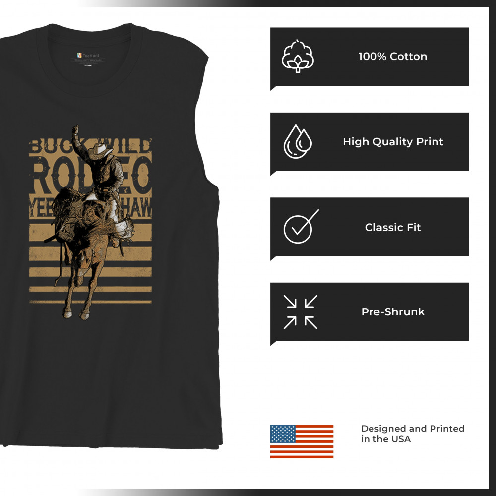 Rodeo bronc rider design with cowboy grit. Western graphic for fans of ranch life, bucking broncos, and rodeo events.