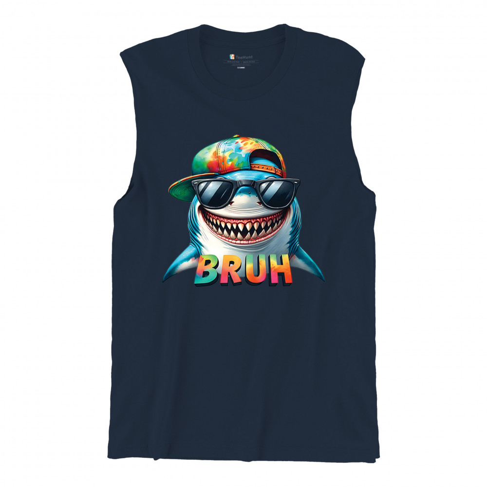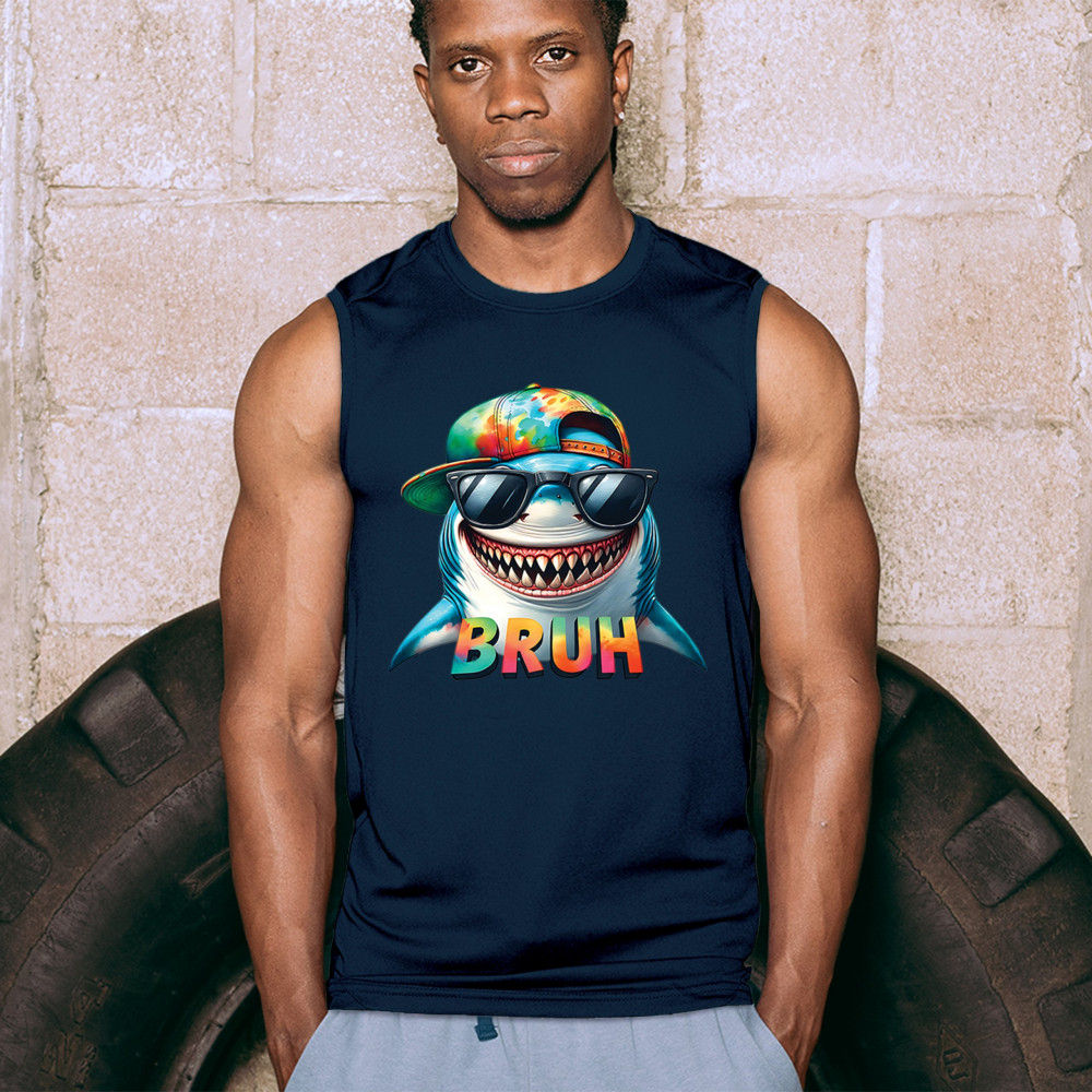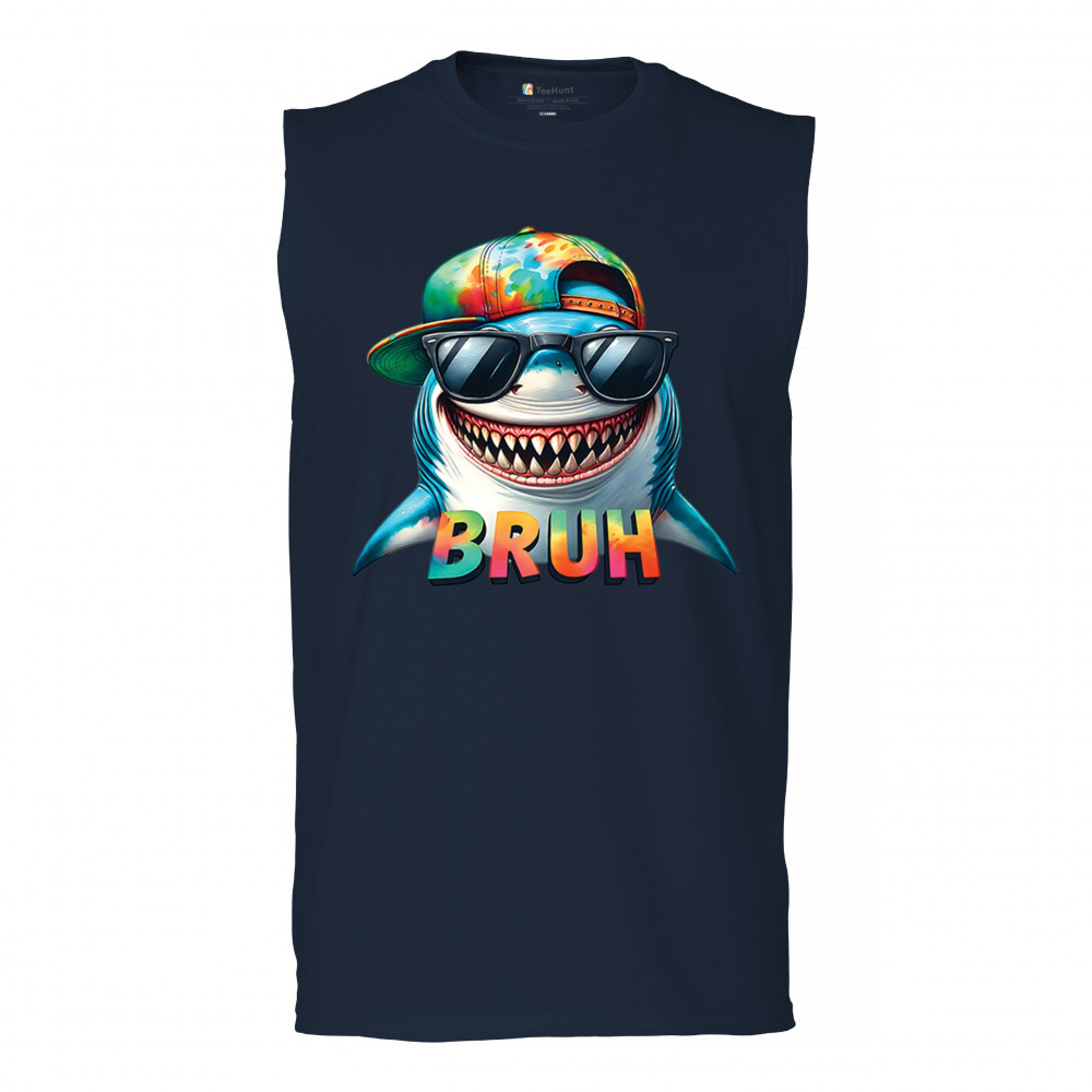 Bruh Shark meme shirt with Gen Z humor, cartoon shark design, summer beach vibes, Sigma Aura, and Italian Brainrot internet humor.
