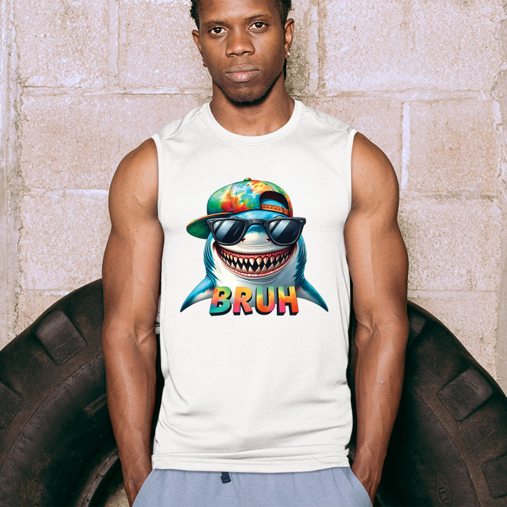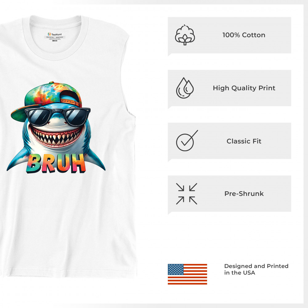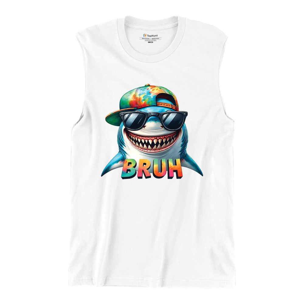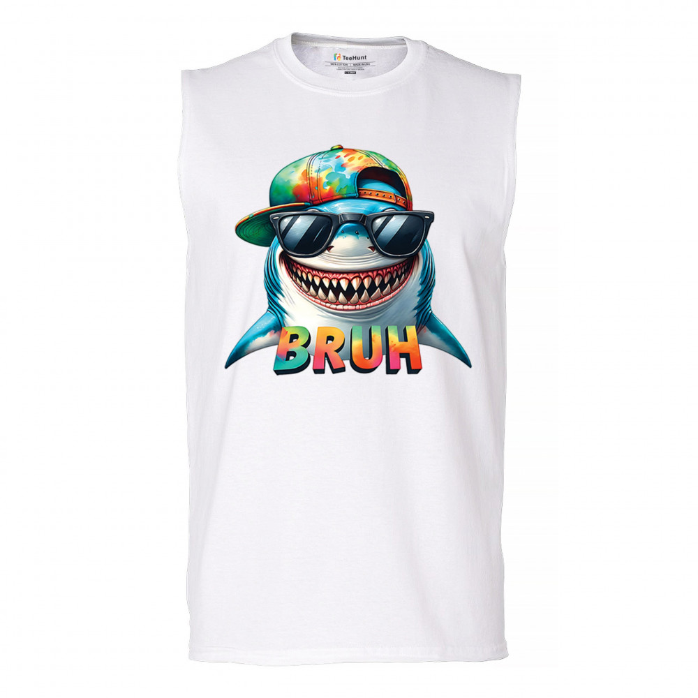 Bruh Shark meme shirt with Gen Z humor, cartoon shark design, summer beach vibes, Sigma Aura, and Italian Brainrot internet humor.