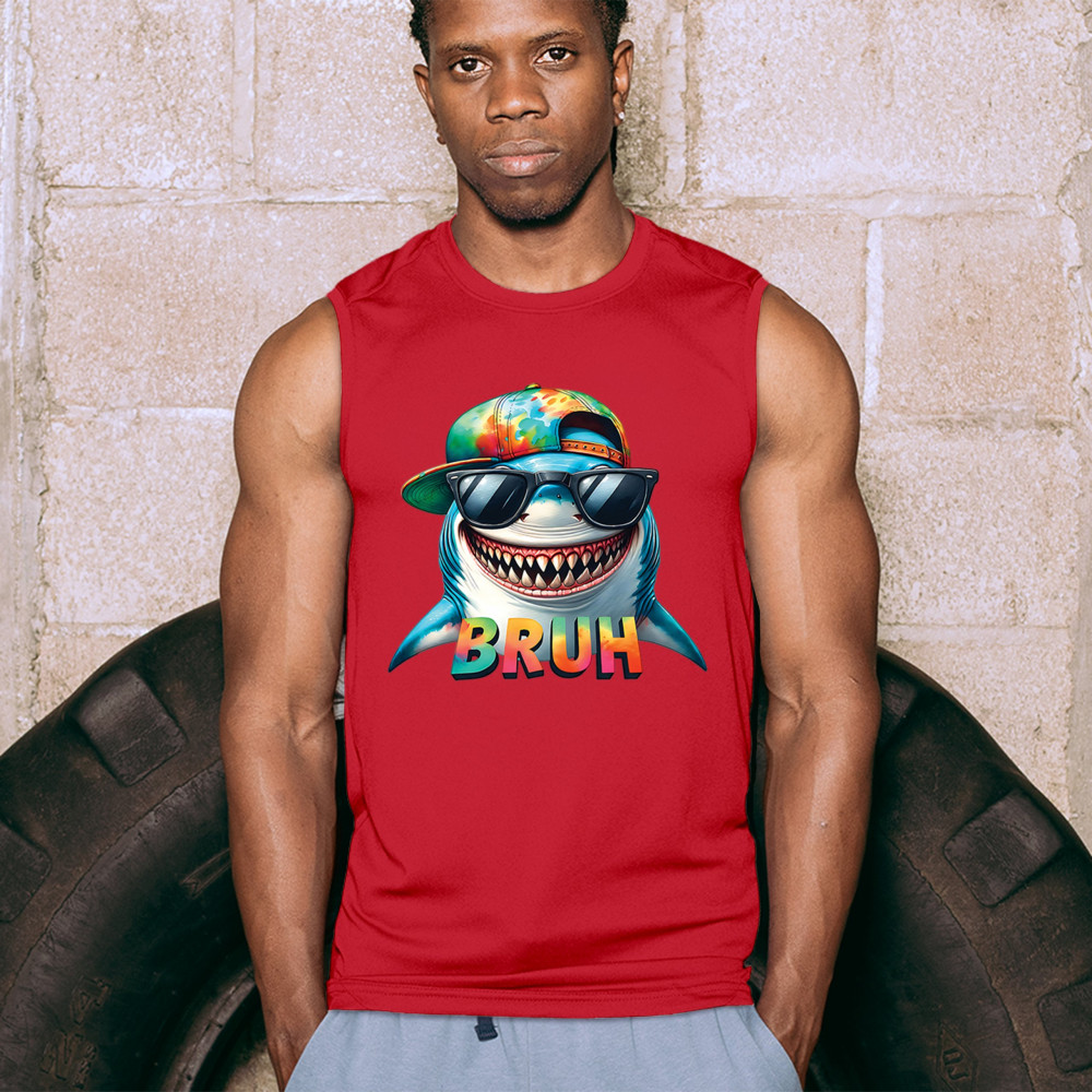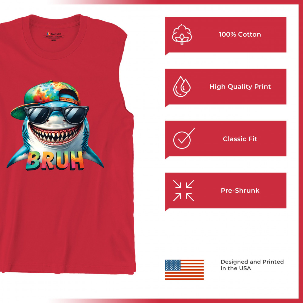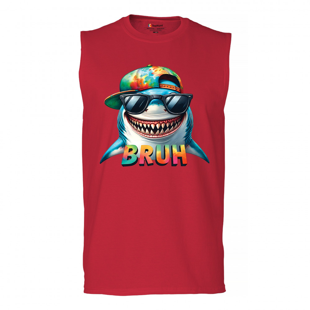 Bruh Shark meme shirt with Gen Z humor, cartoon shark design, summer beach vibes, Sigma Aura, and Italian Brainrot internet humor.