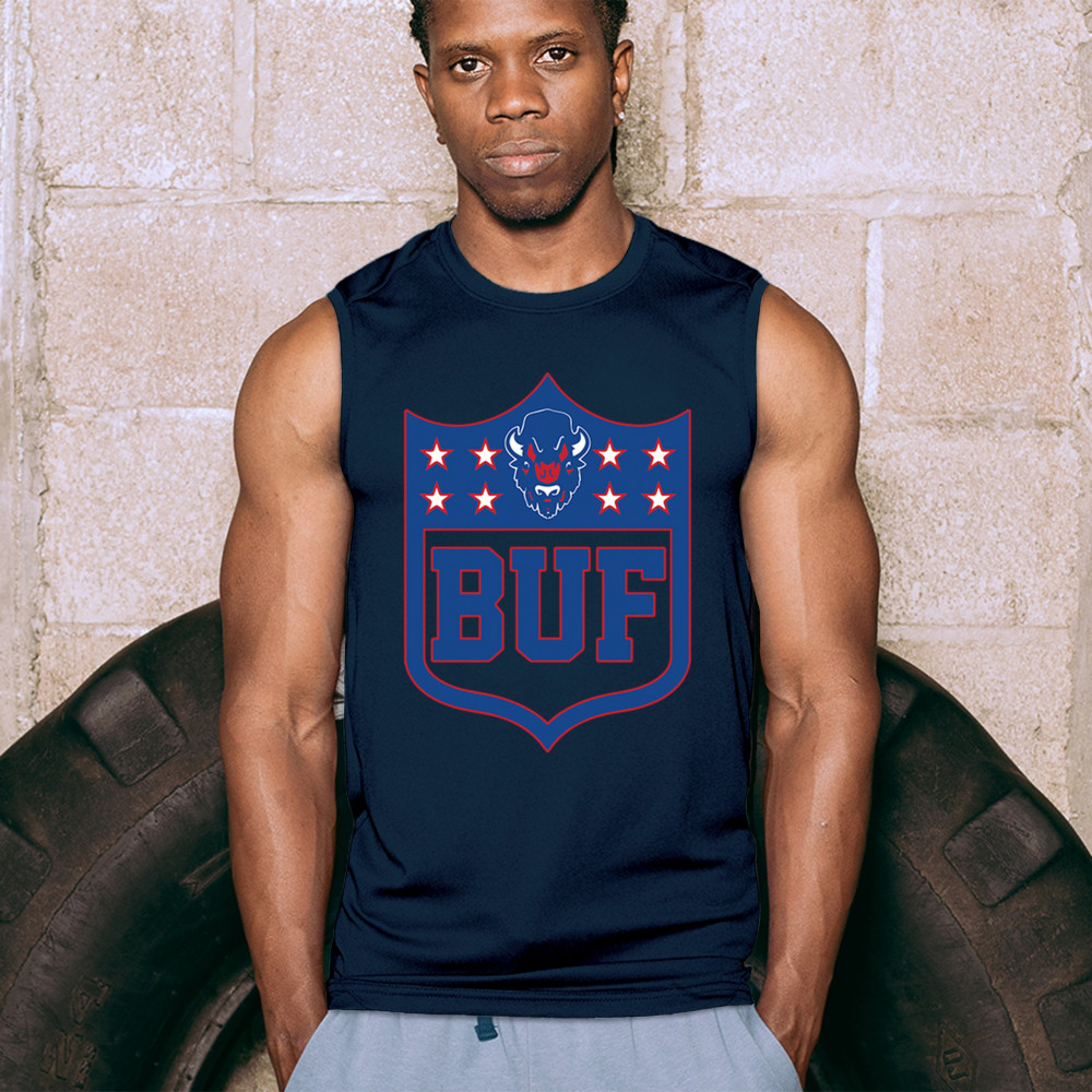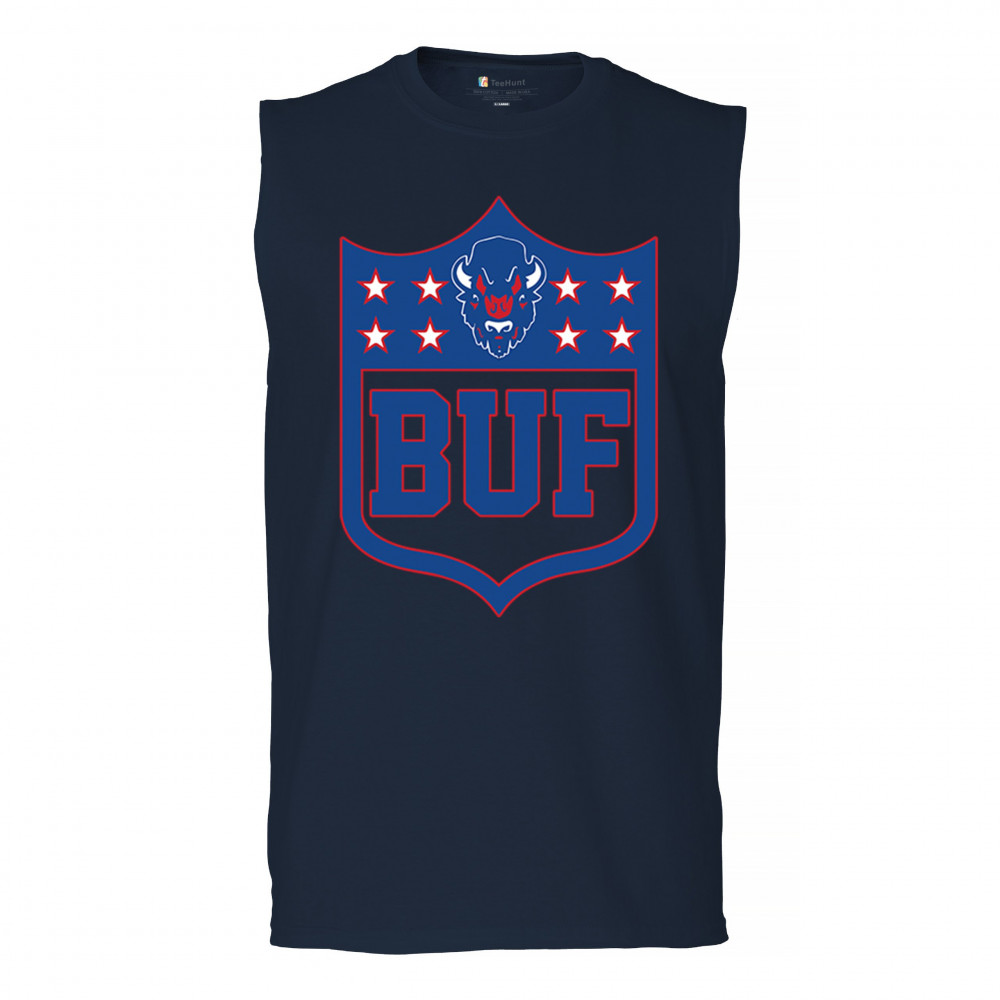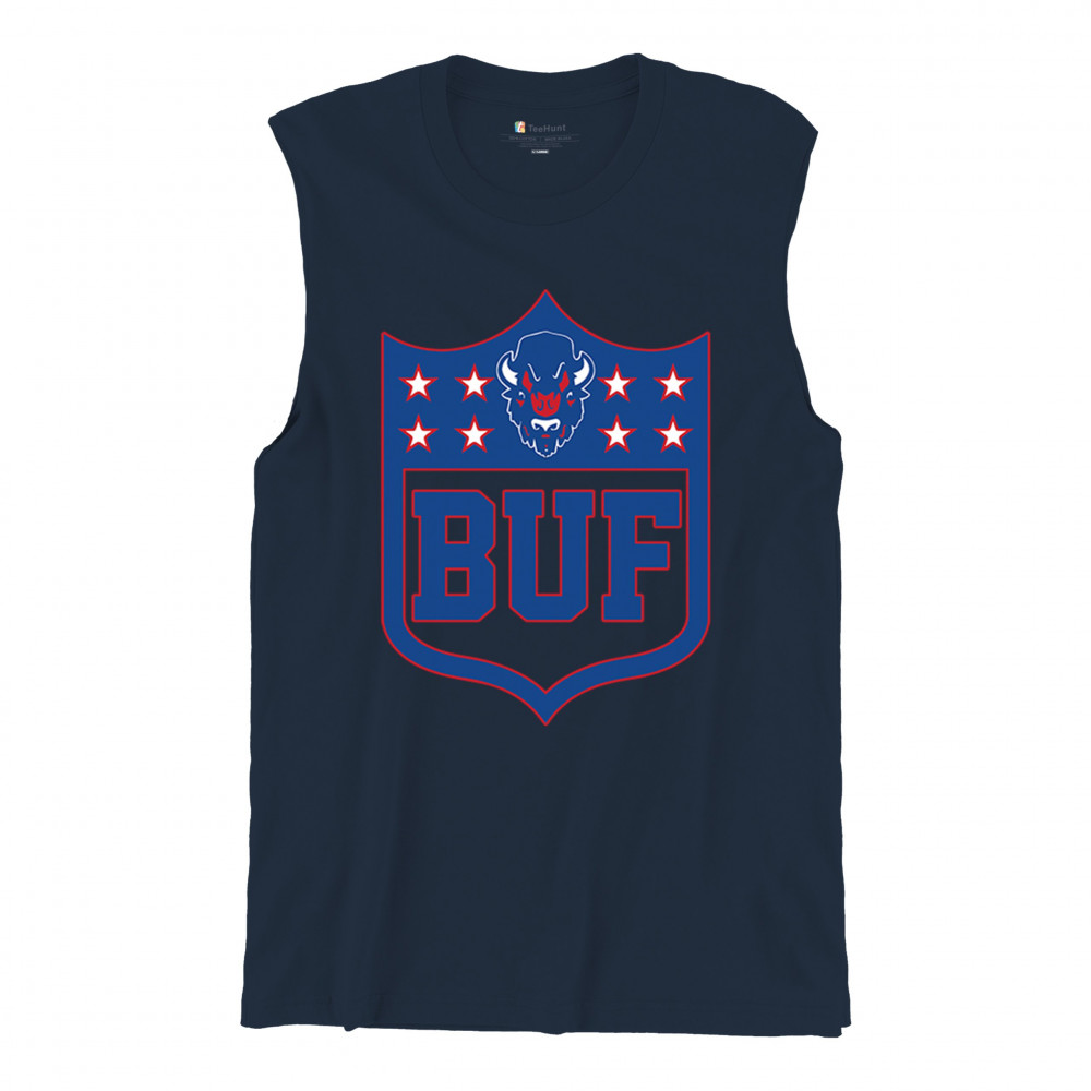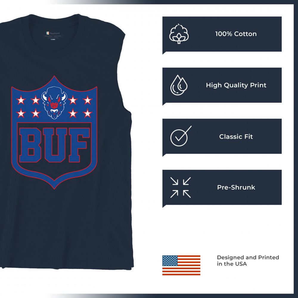 Bold Buffalo bison shield design for game day gear, tailgating, Sunday football, and championship pride in The Queen City.