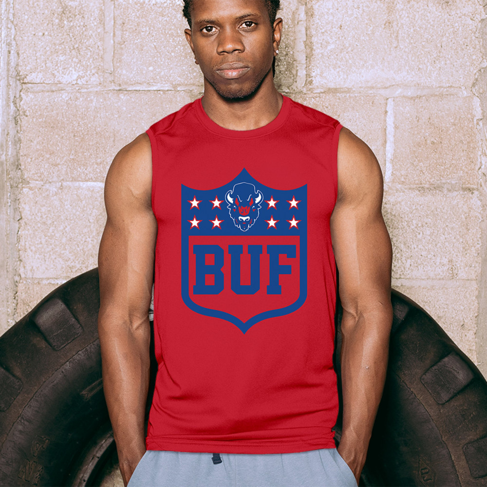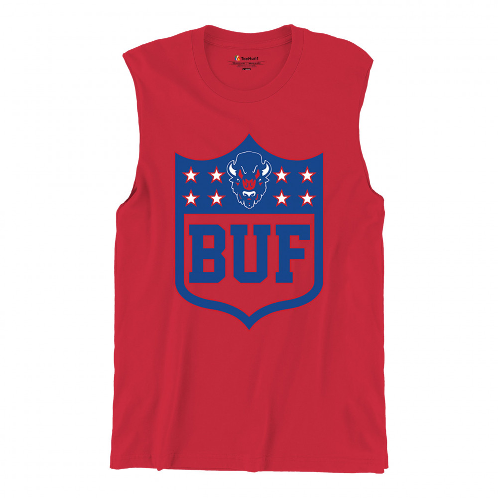 Bold Buffalo bison shield design for game day gear, tailgating, Sunday football, and championship pride in The Queen City.