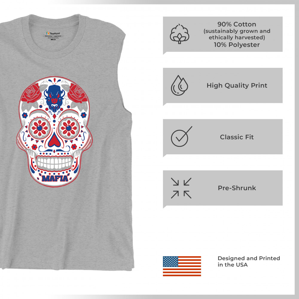 Celebrate Buffalo football with this Sugar Skull design inspired by Dia de los Muertos. Featuring NY Bleed Blue toughness, Northern Grit, and Queen City spirit, it’s made for tailgate parties, playoff energy, and fantasy football rivalries. A bold calavera for true Buffalo fans who live Game Day pride.