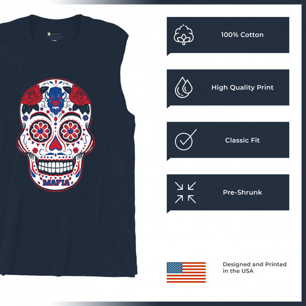 Celebrate Buffalo football with this Sugar Skull design inspired by Dia de los Muertos. Featuring NY Bleed Blue toughness, Northern Grit, and Queen City spirit, it’s made for tailgate parties, playoff energy, and fantasy football rivalries. A bold calavera for true Buffalo fans who live Game Day pride.