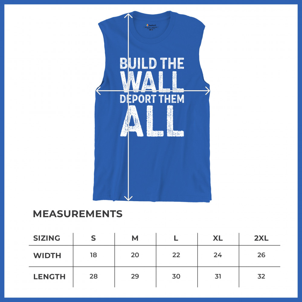 Stand strong for border security with our 'Build the Wall Deport Them All Trump 2024' tee. As a proud Trump supporter, join the America First movement and champion conservative values. Trust in God, not government, and reject the failed policies of Sleepy Joe. Let's go Brandon! Let the American flag wave high as we rally for victory in 2024.