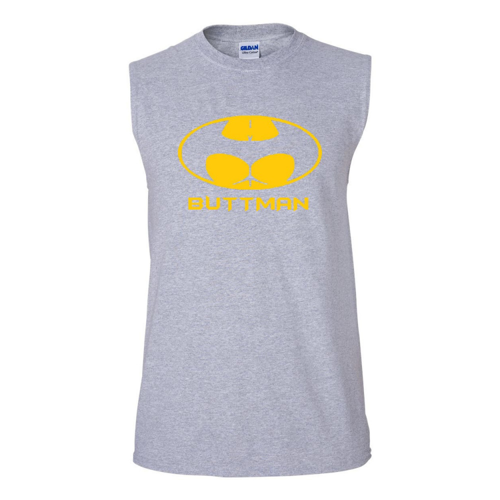 BUTTMAN FUNNY PARODY muscle shirt humor booty ass drinking gray