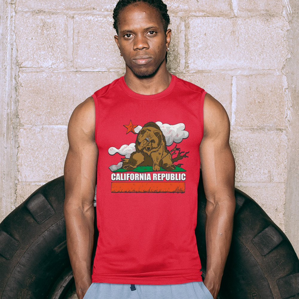 CALIFORNIA BEAR FACEPALM muscle shirt the great california exodus men's red