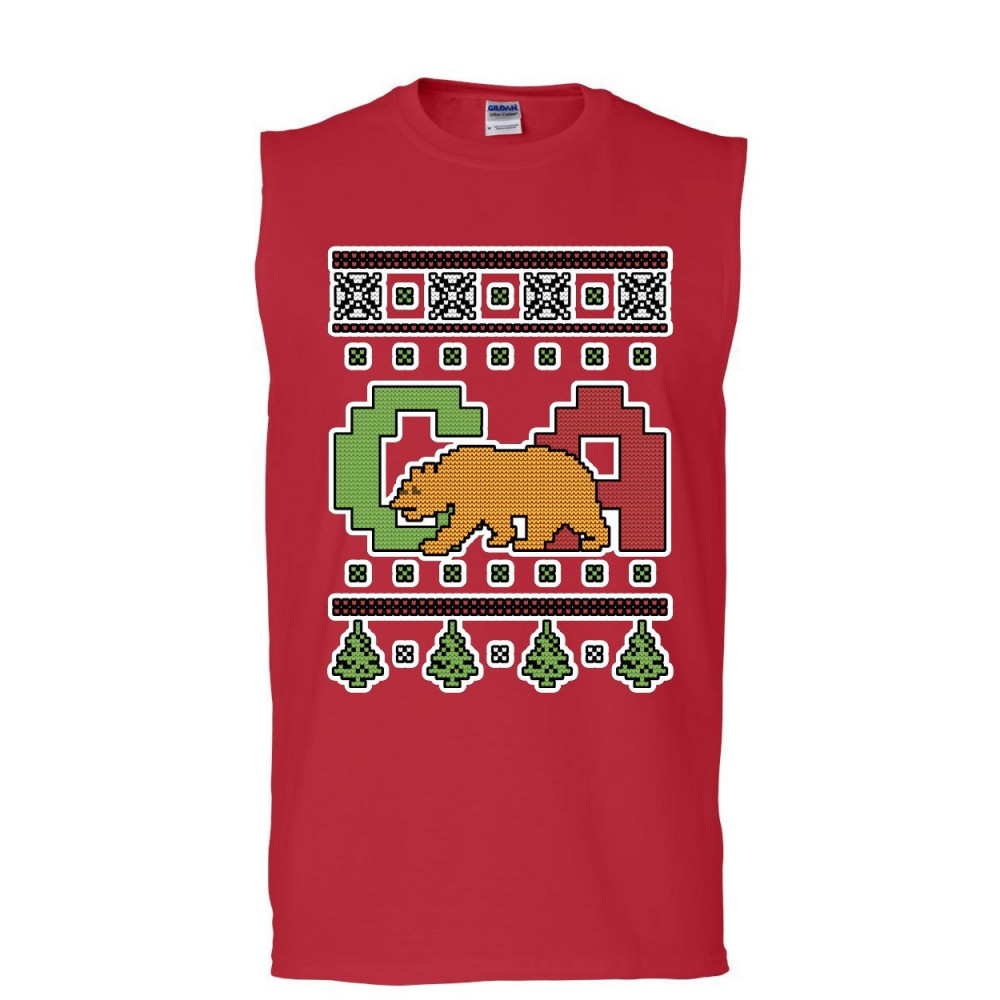 CALIFORNIA REPUBLIC UGLY SWEATER muscle shirt christmas xmas ca bear sleeveless red