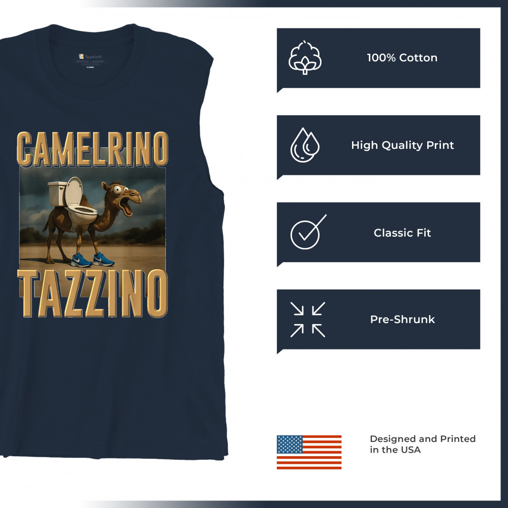 Camelrino Tazzino fuses toilet-core fashion, cursed camel chaos, TikTok meme humor, surreal animal design, and Gen Z absurdity.