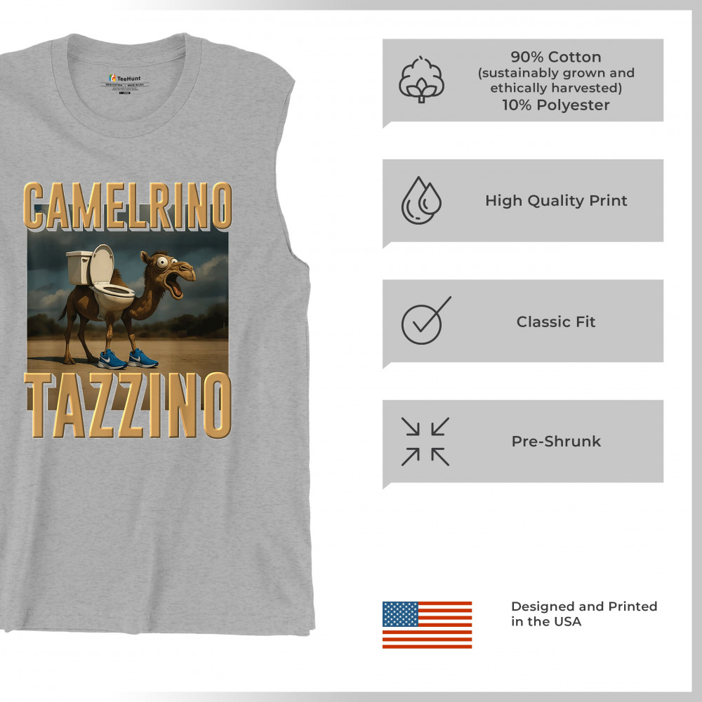 Camelrino Tazzino fuses toilet-core fashion, cursed camel chaos, TikTok meme humor, surreal animal design, and Gen Z absurdity.