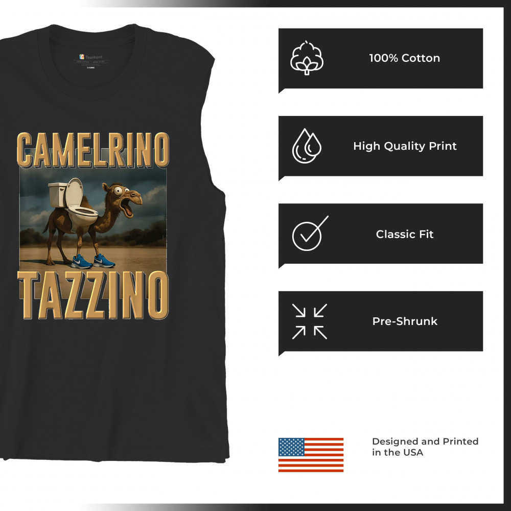 CAMELRINO TAZZINO men's muscle shirt funny italian brainrot gen z alpha meme black