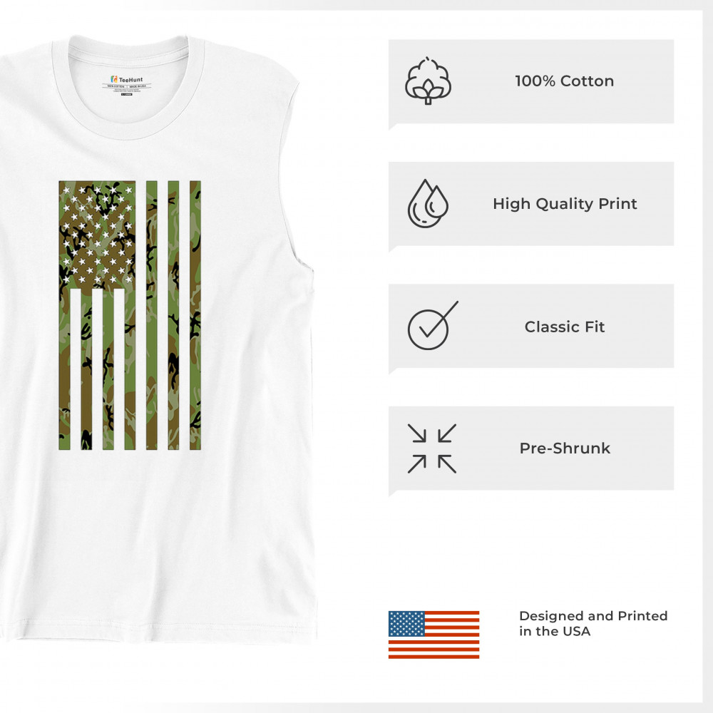 Show your American pride with this camouflage flag design. Perfect for veterans and patriots. Ideal for the 4th of July, Memorial Day, and Veterans Day.